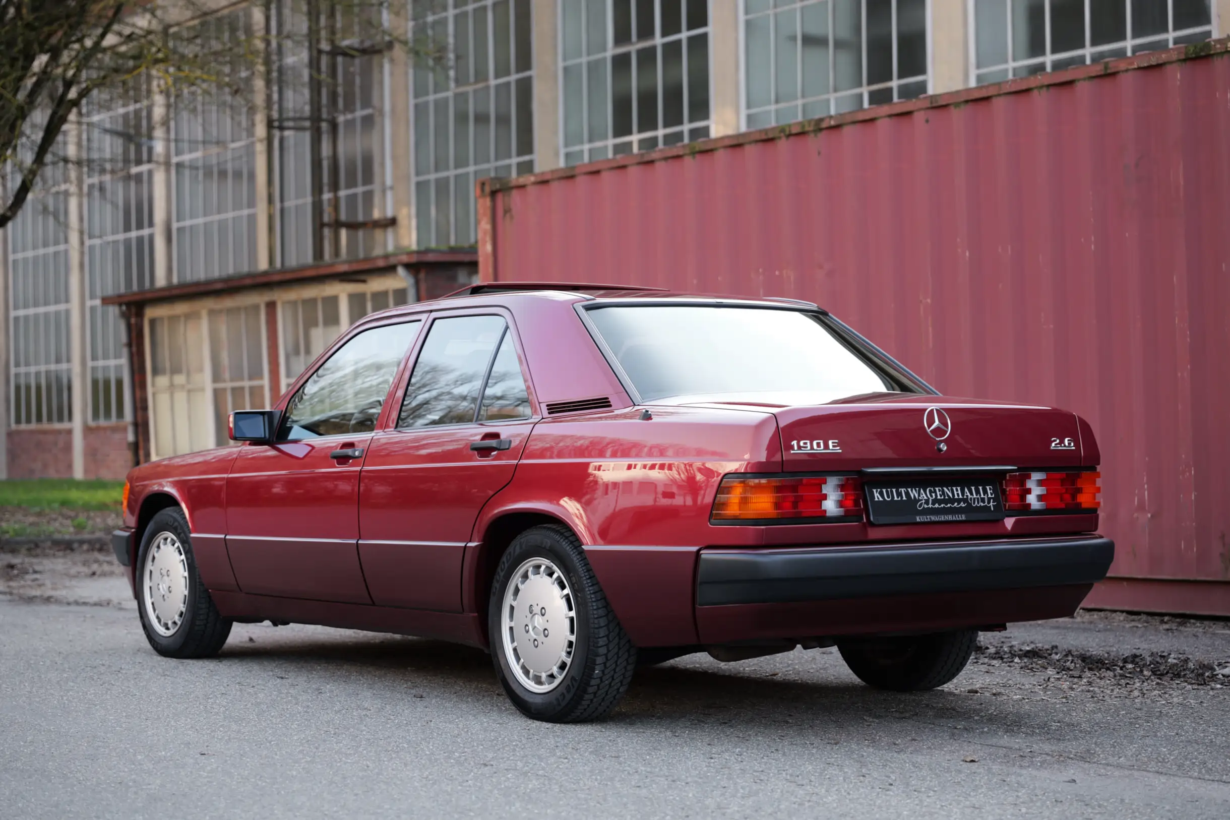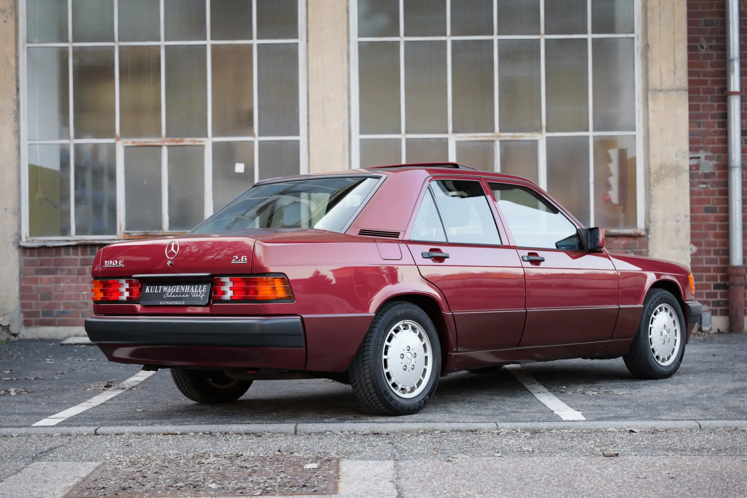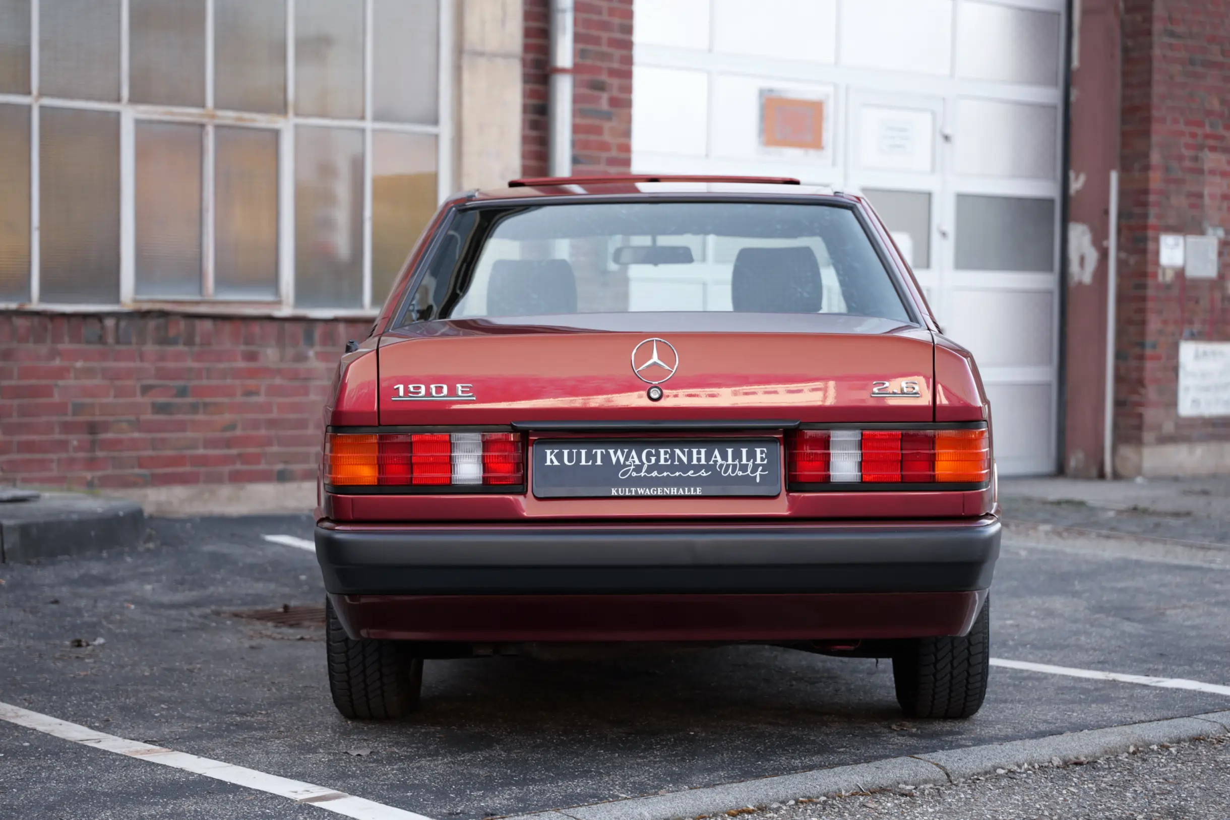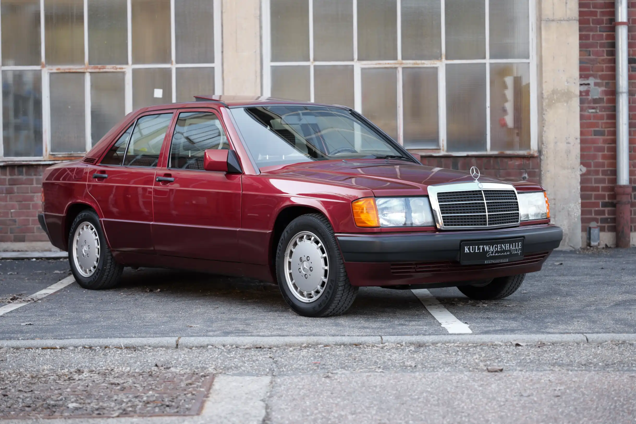 Der hier angebotene Mercedes-Benz 190E 2.6 wurde im September 1991 erstmals auf die Mercedes-Benz Bald Automobilhandels GmbH in 5276 Wiehl, südlich von Gummersbach, zugelassen. Keine vier Monate später, im Januar 1992, erfolgt bereits eine Stilllegung. Im April 1992 wird der 190er dann erstmals an eine private Eigentümerin in Waldbröl verkauft und bleibt dort 15 Jahre lang im Besitz. In dieser Zeit wird der Wagen durchgängig bei Mercedes-Benz gewartet, was das mitgelieferte Scheckheft belegt. Im April 2007 wird das Fahrzeug abermals stillgelegt und kommt anschließend in eine Sammlung ohne weitere Straßenzulassung. Mit einem umfangreichen technischen Service wurde die kompakte Limousine bei der Kultwagenhalle wieder behutsam in Betrieb genommen.
