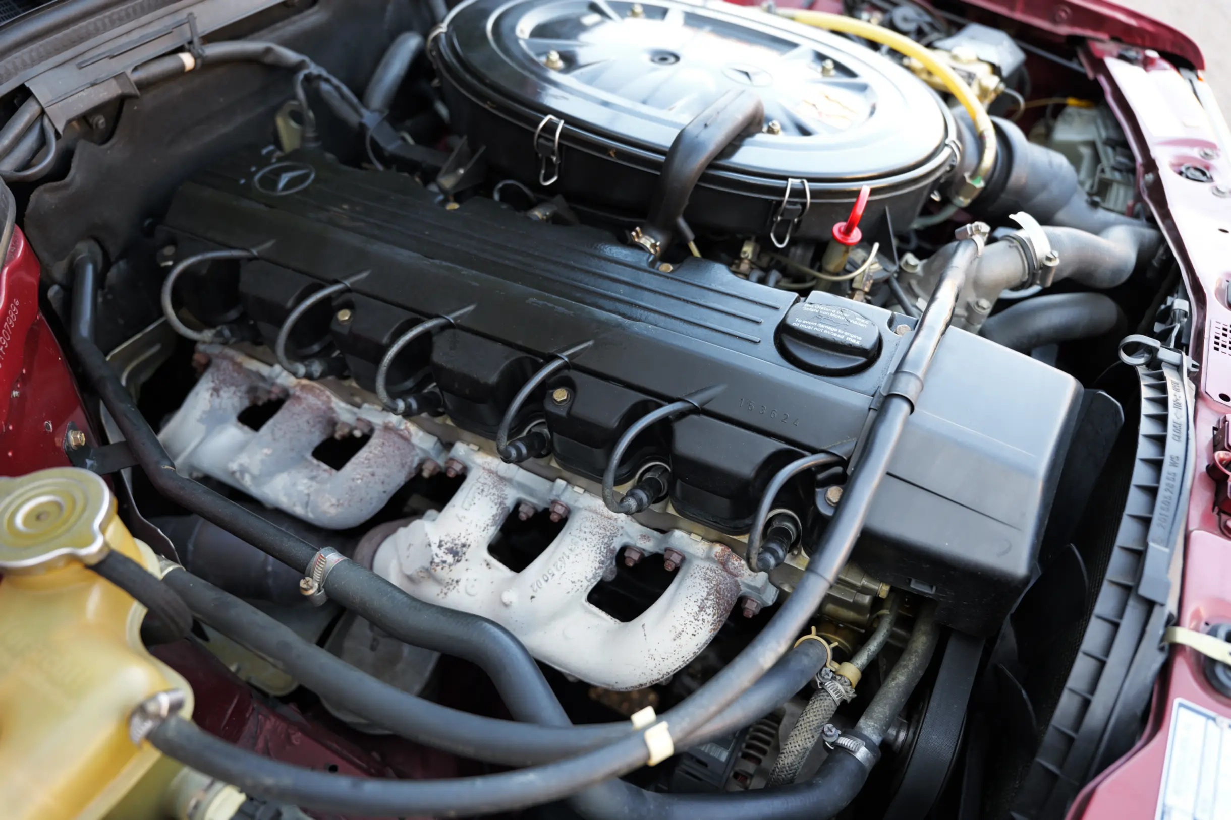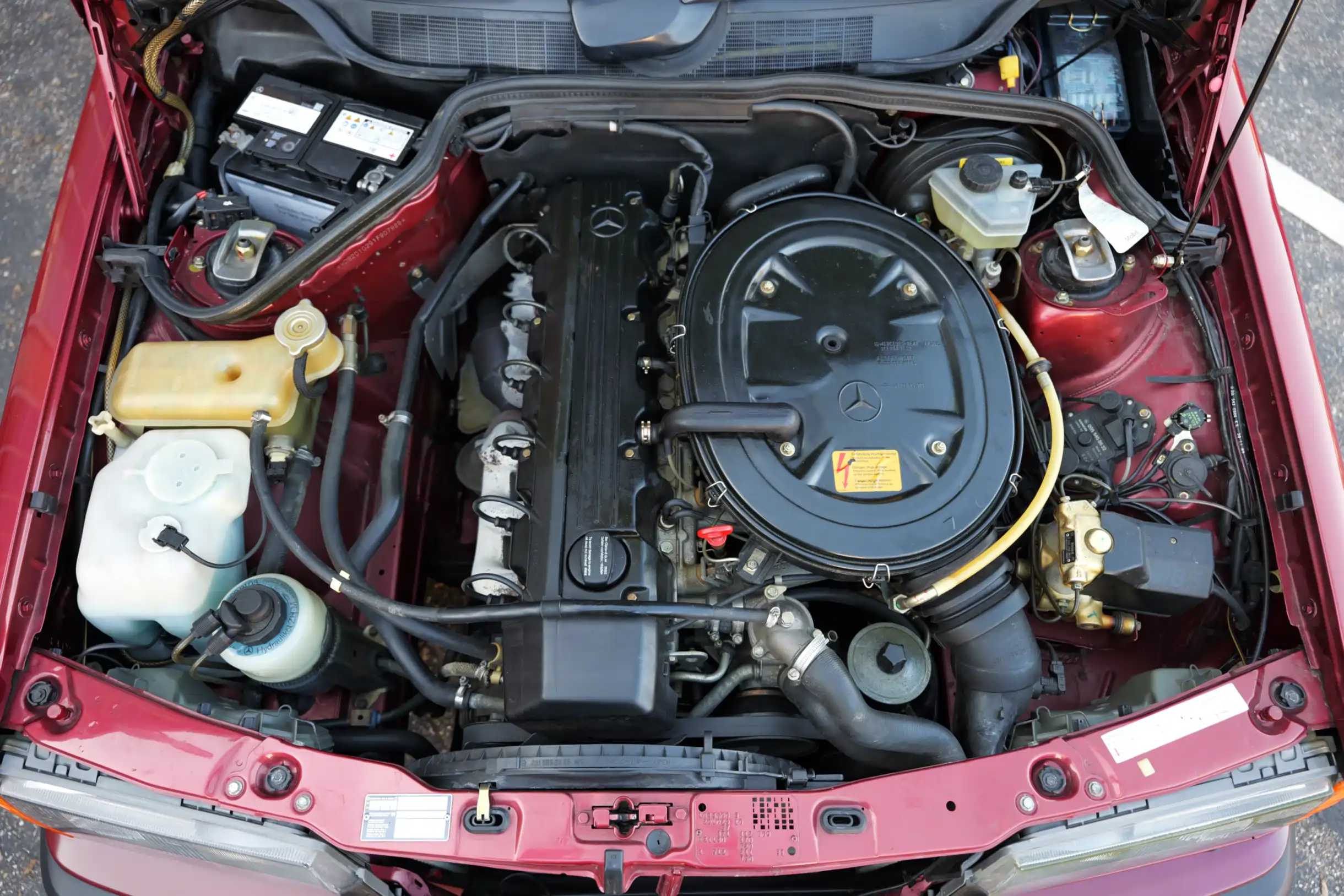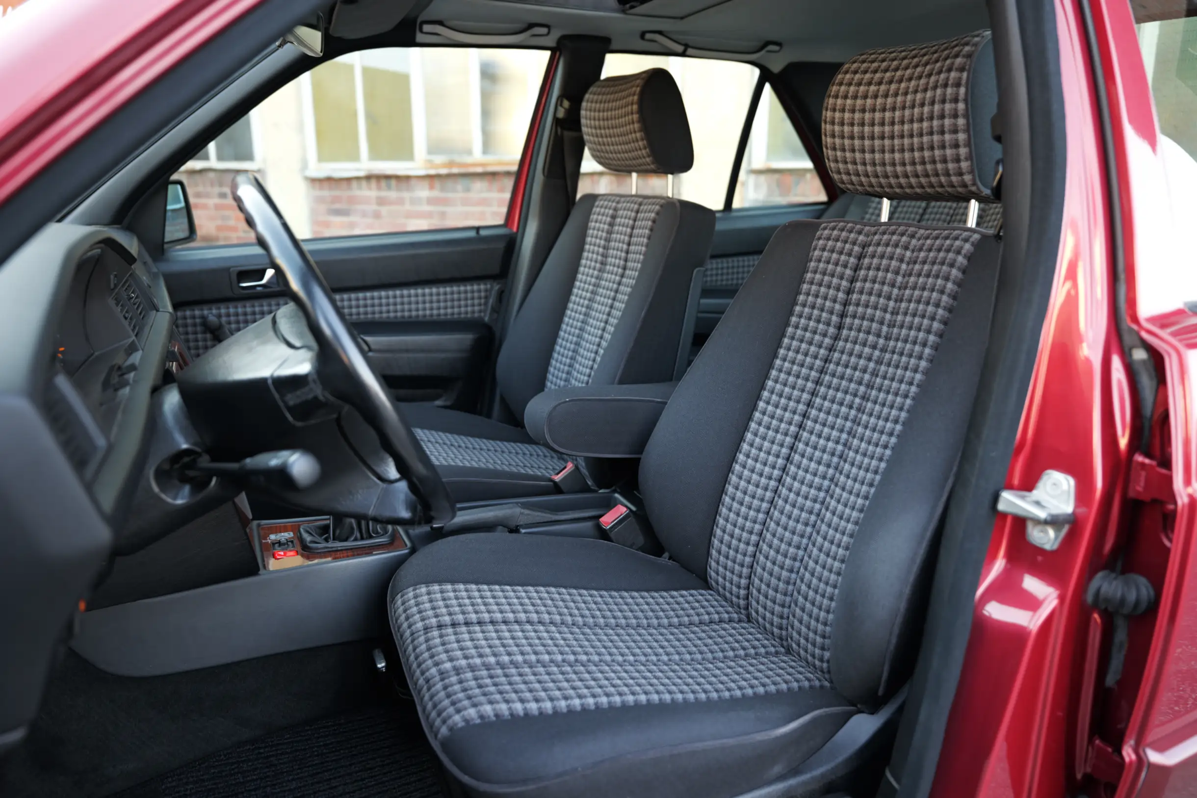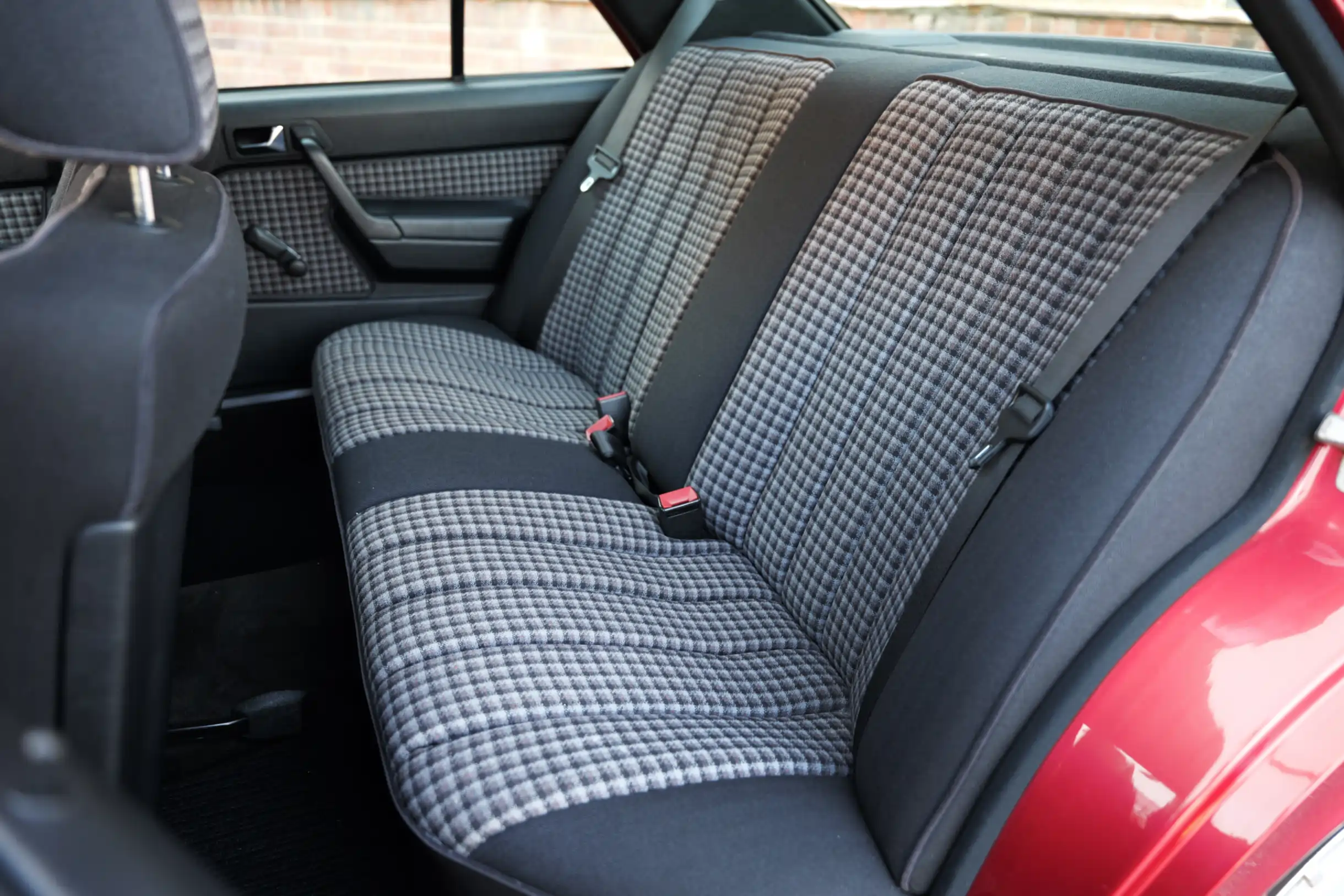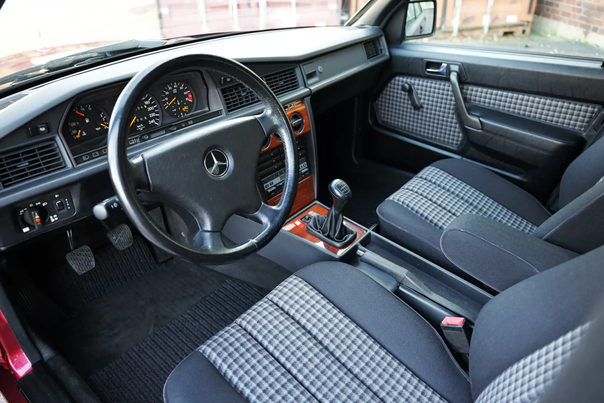 Der M103 Sechszylinder-Reihenmotor mit 2597 cm³ Hubraum, 160 PS Leistung und 220 Nm Drehmoment schnurrt mit einer aktuellen Laufleistung von knapp 75.500 km wie am ersten Tag und sorgt in Verbindung mit dem 5-Gang Schaltgetriebe für enormen Fahrspaß. Sehr passend zum sportlichen Charakter des Fahrzeugs ist die Lackierung in der Farbe Almandinrot-Metallic (512) in Kombination mit Sitzbezügen in Stoff Karo Schwarz (371). Beides befindet sich in einem außergewöhnlich guten Erhaltungszustand. Auch das Lederlenkrad im sportlichen 390 mm Design und der Lederschalthebel sind in einem tollen Zustand. Im Lieferumfang enthalten ist die originale Betriebsanleitung mit Wartungsheft und Datenkarte. Auch die Bedienungsanleitung mit Radiocode für das original verbaute Becker Europa 2000, Typ 1100 Autoradio sind vorhanden. Der neue Besitzer darf sich auf einen richtig kraftvollen Mercedes-Benz 190E mit seltenem Sechszylinder-Motor und 5-Gang Schaltgetriebe freuen, der nicht nur im Stand durch seinen großartigen Zustand begeistert, sondern auch auf der Straße unglaublich viel Freude bereitet.