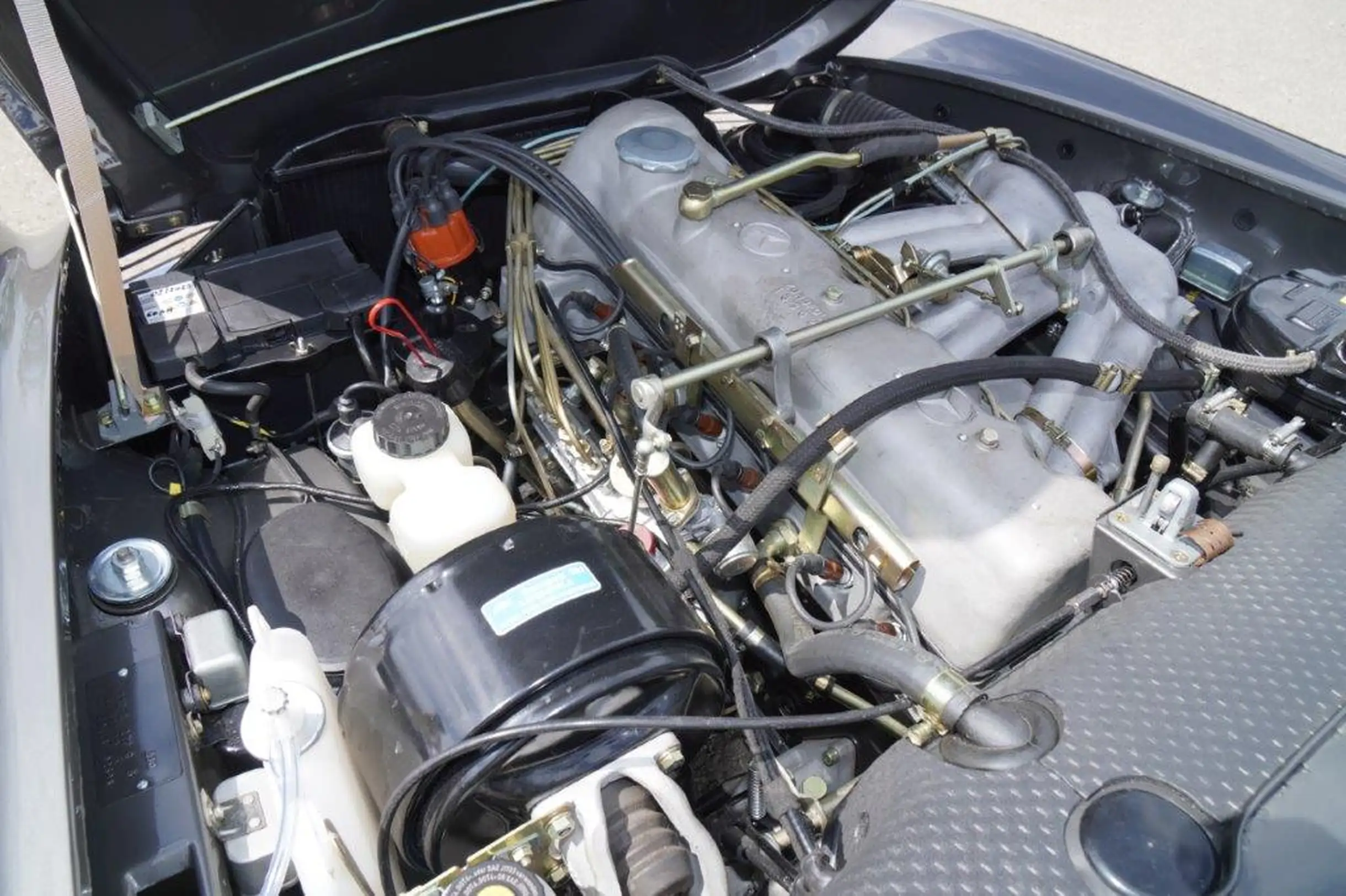Auch der hier angebotene Pagode 230SL wurde am 19. Februar 1965 in der Lackfarbe 717 Papyrusweiß von seinem Erstbesitzer in Kalifornien/USA übernommen. Im Jahr 2018 kam das Fahrzeug nach Deutschland und wurde seit 2023 im Zeitraum über zwei Jahre mit viel Herzblut einer Frame-Off-Restauration unterzogen. Die Pagode wurde vollständig zerlegt, Achsen, Motor, Innenausstattung, jede Schraube erneuert und das Blechkleid mit Neuteilen aufgebaut und in der wunderschönen Farbe 172 Anthrazitgrau-Metallic lackiert. Passend dazu hat der SL eine neue Leder-Ausstattung mit Teppichen in der Farbe Cognac und ein braunes Verdeck bekommen. Der M127.II Sechszylinder-Reihenmotor mit mechanischer Saugrohreinspritzung steht bei 10 km Laufleistung und schnurrt wie ein Kätzchen. Mit einer umfangreichen Restaurationsmappe samt Foto-Buch und sämtlichen Rechnungen sind alle Arbeiten sorgfältig dokumentiert. Der neue Besitzer bekommt hier ein technisch und optisch perfektes Traumfahrzeug mit Wertgutachten in der Zustandsnote 1.