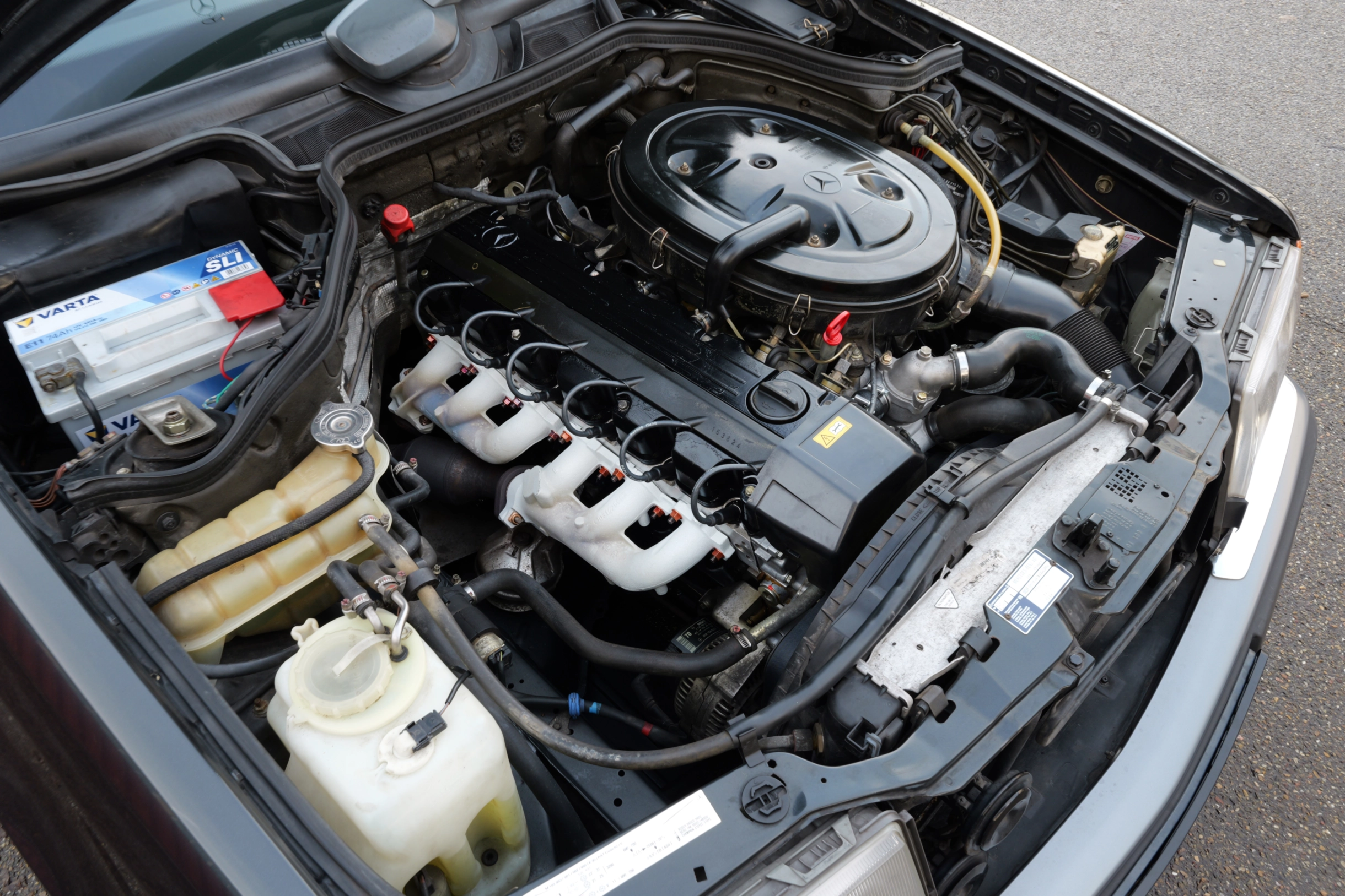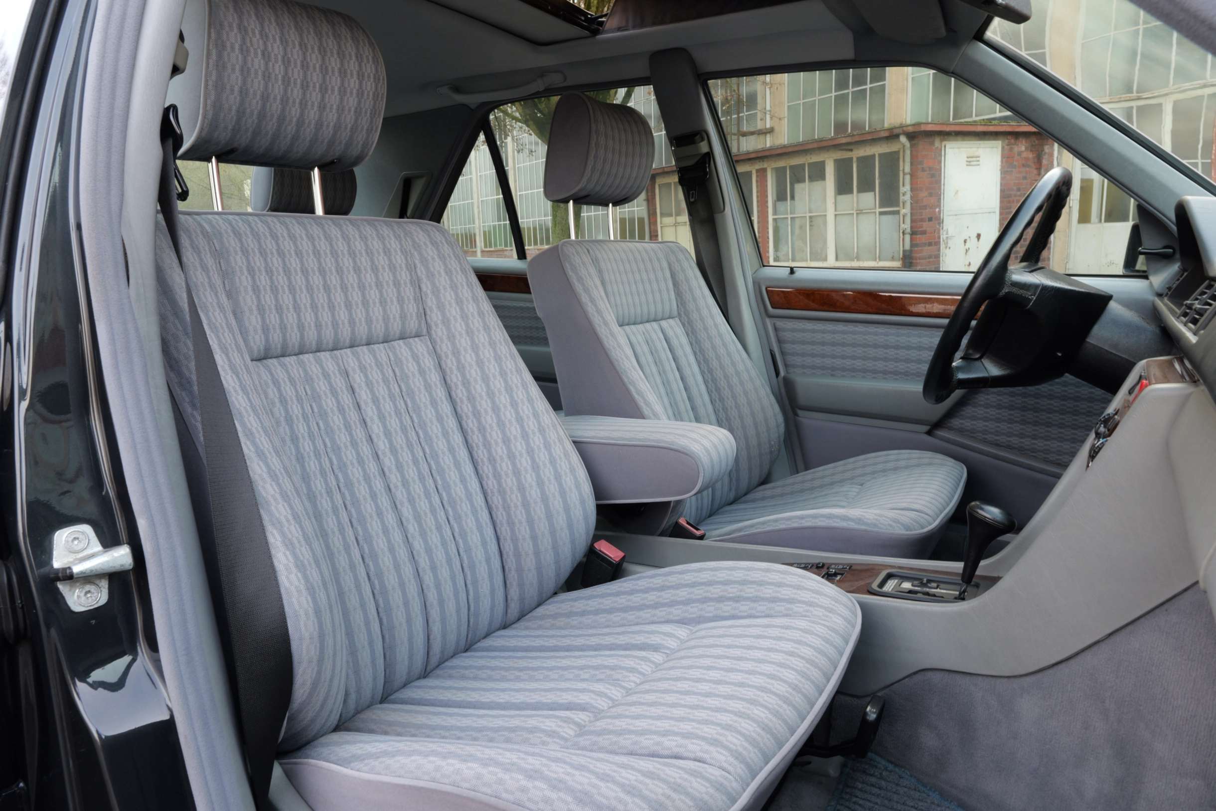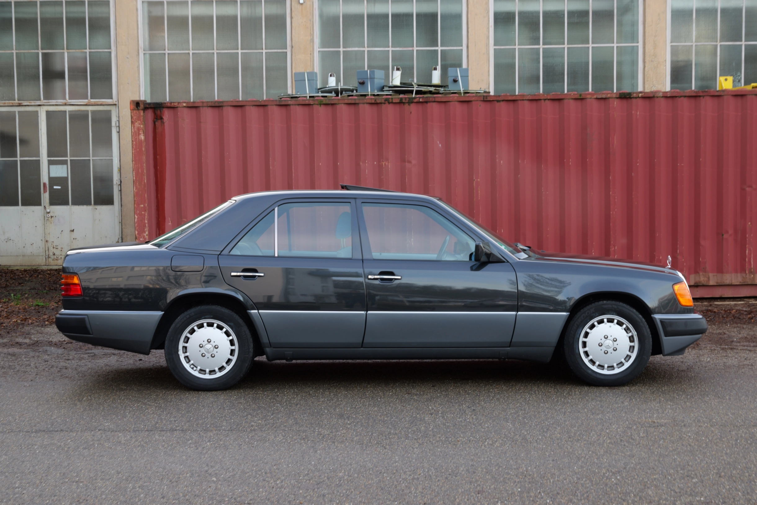 Der hier angebotene Mercedes-Benz 300E wurde über die Niederlassung Bremen ausgeliefert und im Januar 1992 erstmals zugelassen. Der erste Fahrzeugbrief ist leider nicht mehr vorhanden, aber die Service-Eintragungen lassen vermuten, dass die ersten beiden Eigentümer im Raum Delmenhorst, östlich von Bremen wohnhaft waren. Im Dezember 2010 kommt die Limousine in die dritte Hand nach Schwanewede, nordöstlich von Bremen. Der aktuelle Eigentümer aus Düsseldorf erwirbt den 124er im Juli 2015 mit einer Laufleistung von knapp 140.000 km. Im September 2019 erfolgt eine Außerbetriebsetzung und das Fahrzeug gerät leider etwas in Vergessenheit. So wird der Klassiker im November 2025 von der Kultwagenhalle mit neuem Service, neuer Zylinderkopfdichtung und diversen Reparaturen wieder reaktiviert. Die neue HU/AU und ein H-Gutachten besteht der Wagen daraufhin mit Bravour.
