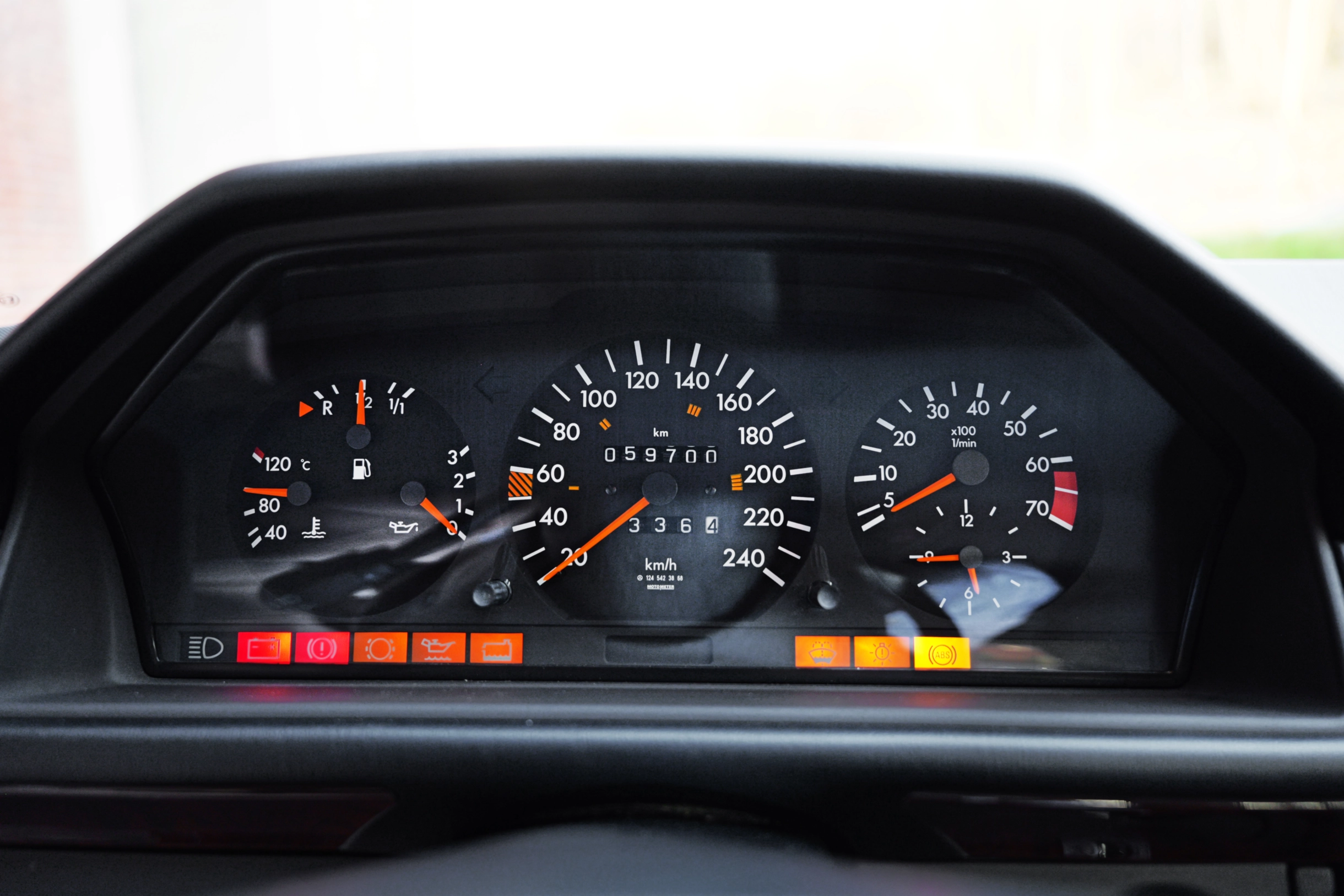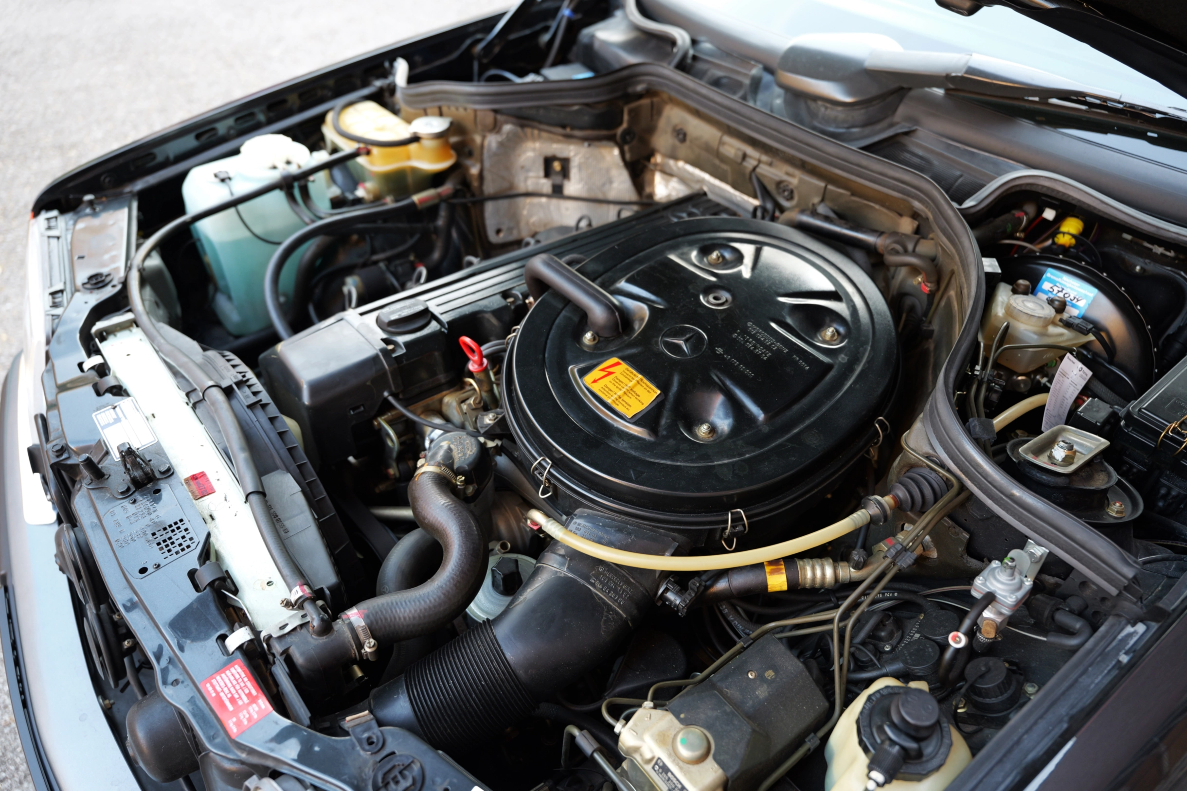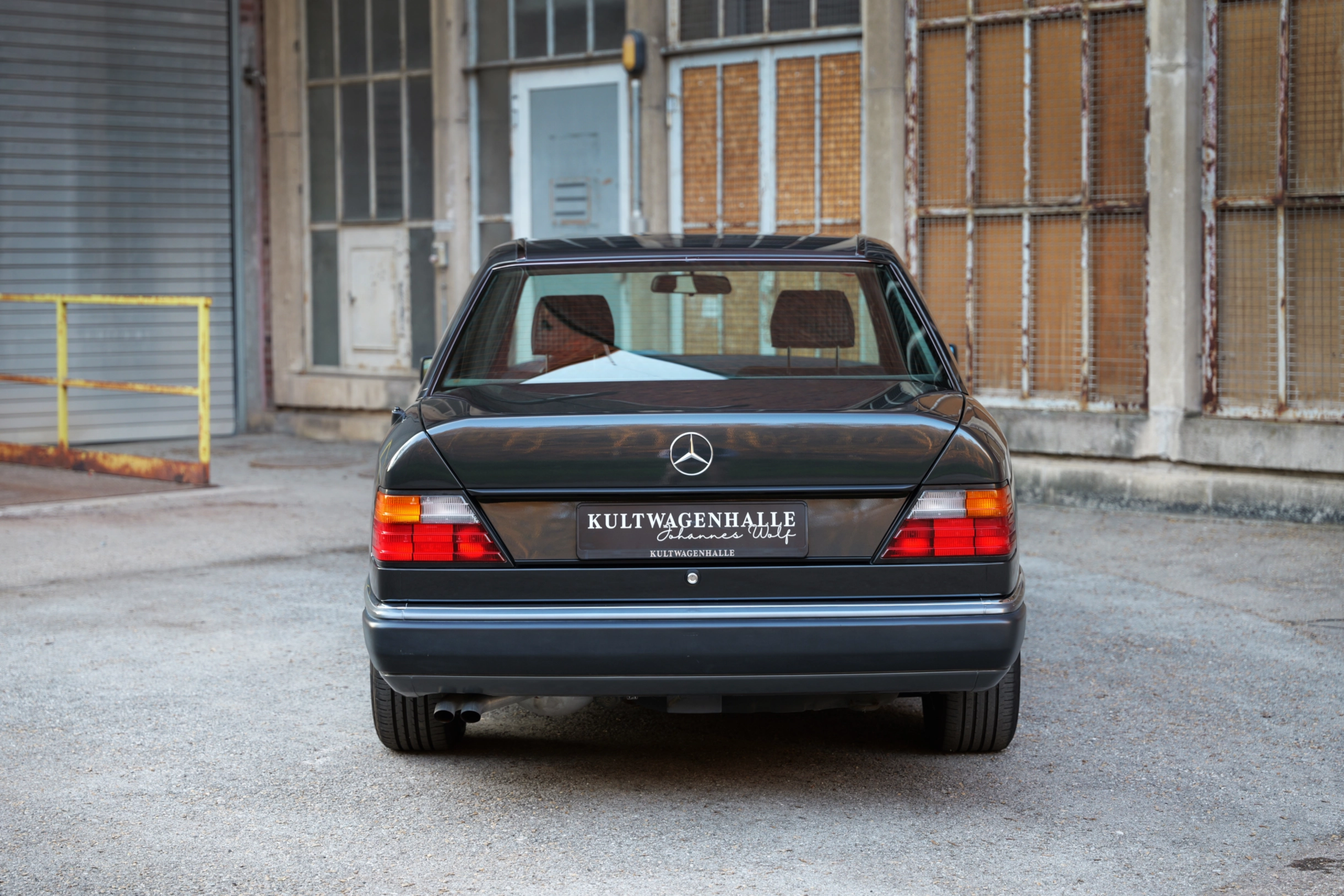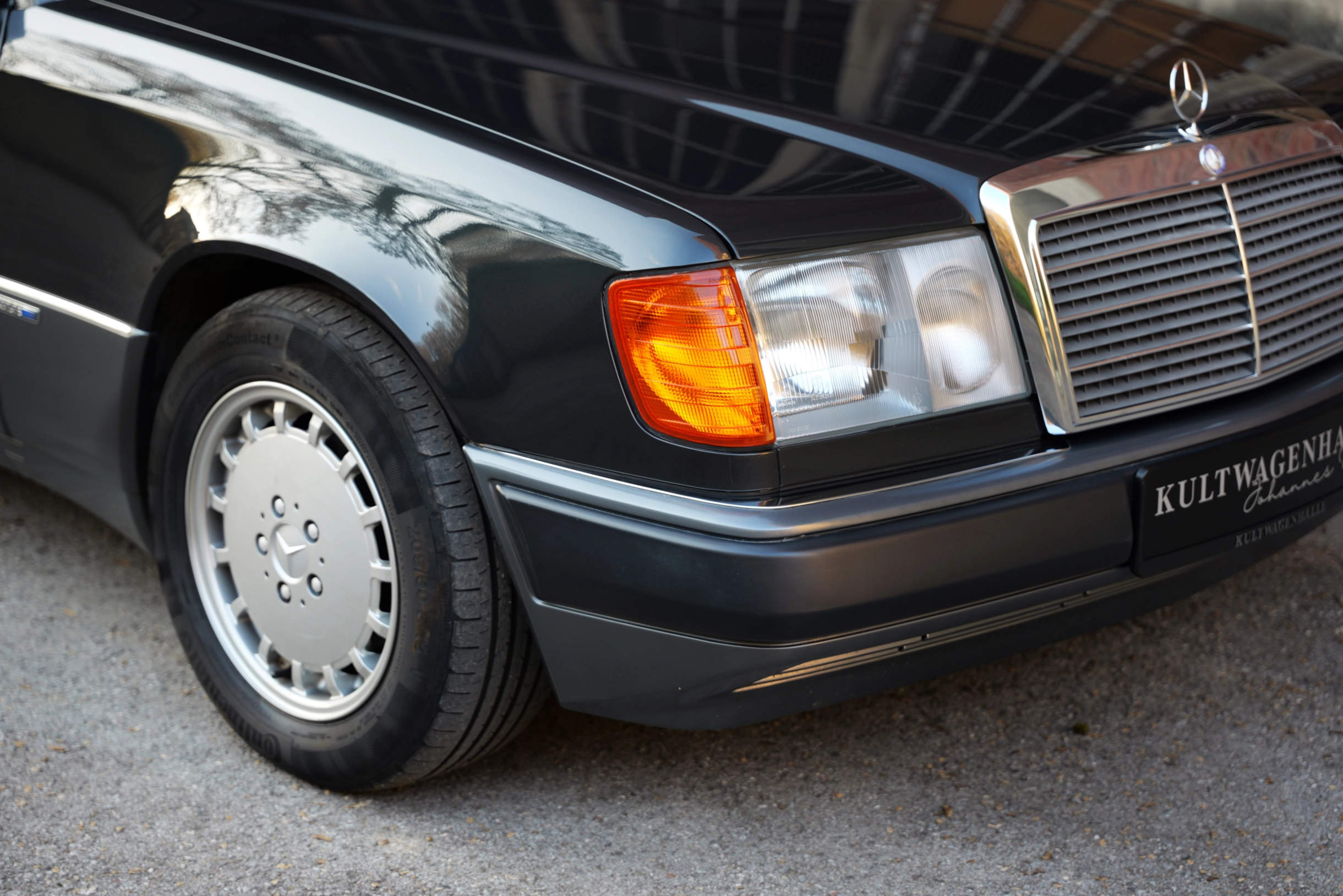 Die Lackierung in der zeitlosen Farbe Blauschwarz-Metallic (199) ist in einem hervorragenden Zustand und die Karosserie hat auch an den typischen Stellen keinerlei Rost-Ansätze. Der Innenraum mit den Sportsitzen in Stoff Karo Schwarz (071), Sport-Lederlenkrad, Sportline Lederschalthebel und Holzdekor in edlem Wurzelnuss sind durchgängig in einem sehr gepflegten Erhaltungszustand ohne wesentliche Abnutzungspuren. Zudem wurde ein zeitgenössisches und originales Mercedes-Benz CD-Radio verbaut und mit der Klimaanlage ist man auch für heiße Sommertage gut gerüstet. Der seidenweiche und kräftige M103 E30 Sechszylinder-Reihenmotor mit 2962 cm³ Hubraum, 180 PS Leistung und 255 Nm Drehmoment sorgt zusammen mit dem manuellen 5-Gang Getriebe für sportliche und souveräne Fahrfreude.