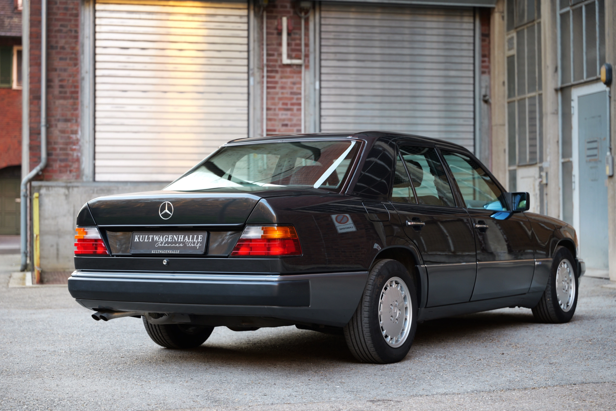 Der hier angebotene Mercedes-Benz 300E in der Sportline Ausstattung wurde über die Niederlassung München ausgeliefert und im April 1991 erstmals auf seinen Käufer aus dem bayerischen Velden zugelassen. Von Beginn an wurde die Limousine regelmäßig über die Wintermonate stillgelegt und damit vor Schnee und Streusalz bewahrt. Erst nach über 26 Jahren wird das Fahrzeug verkauft und vom zweiten und aktuell letzten Eigentümer ab Oktober 2017 zunächst in Meiningen, und nach einem Umzug in Schwäbisch Gmünd zugelassen. Auch hier ist der 124er mit einem Saisonkennzeichen nur von März bis November zugelassen und wird nicht im Winter gefahren. Das war sehr förderlich für den heute sehr schönen und gepflegten Zustand bei einer aktuellen Laufleistung von gerade einmal 59.700 km.