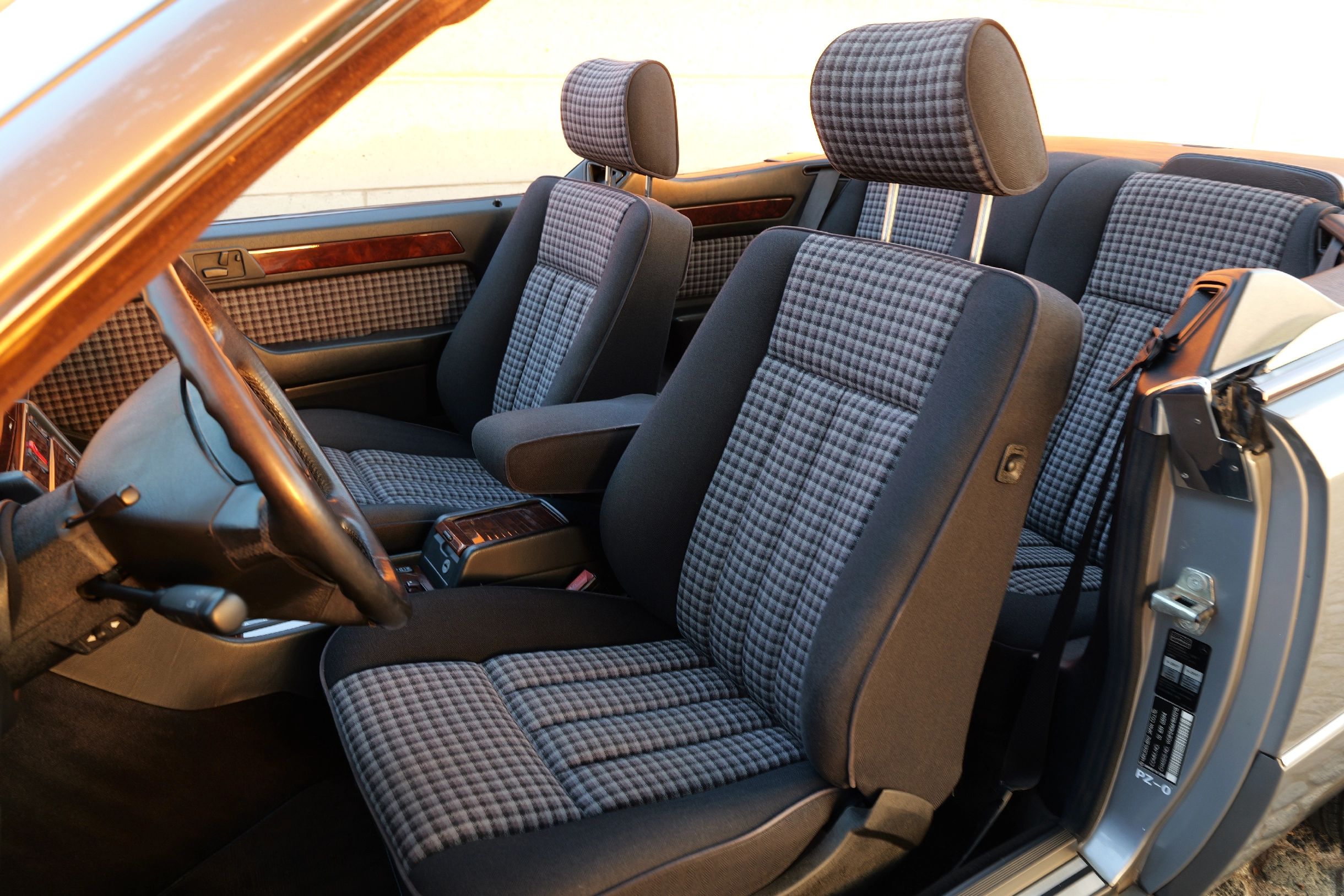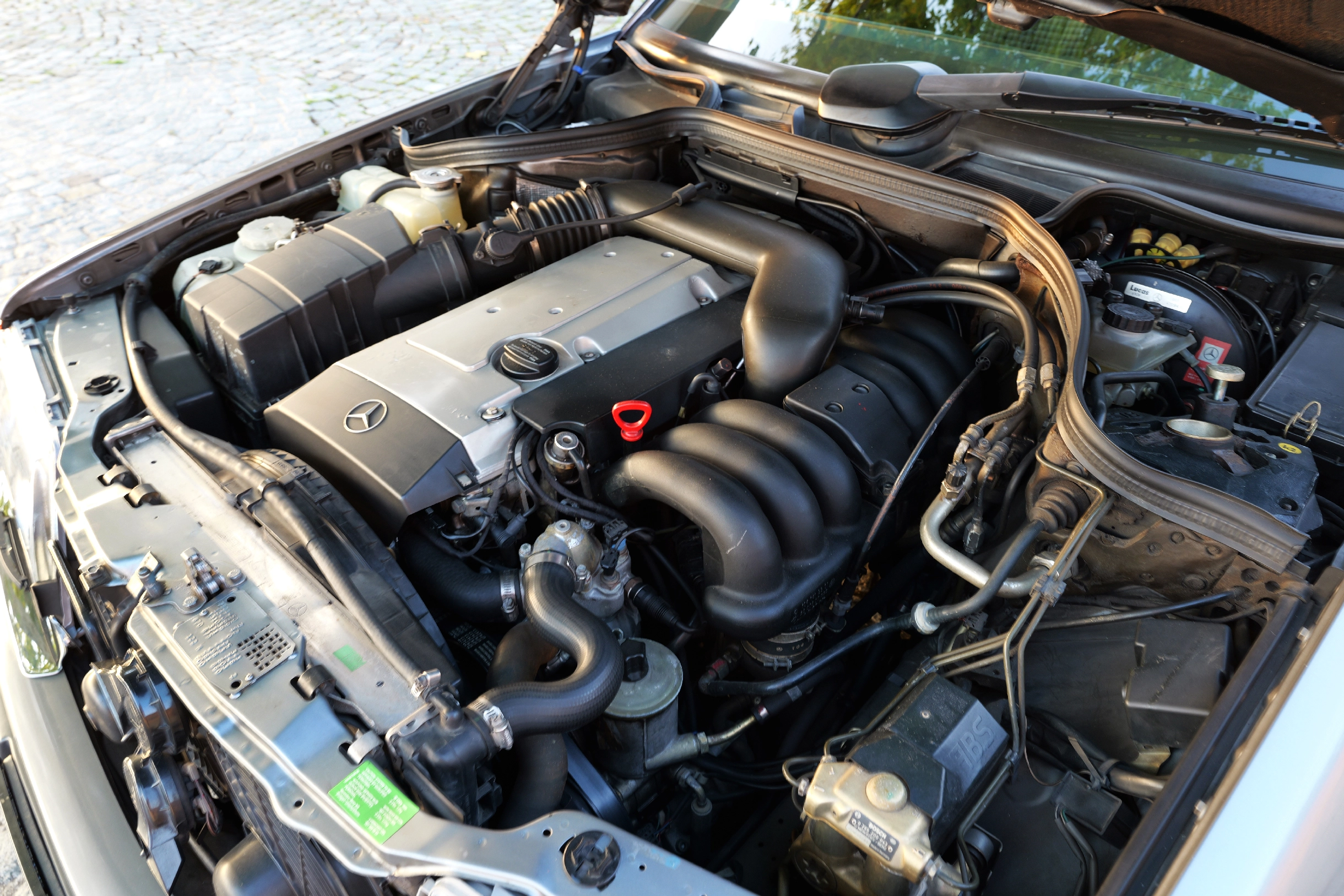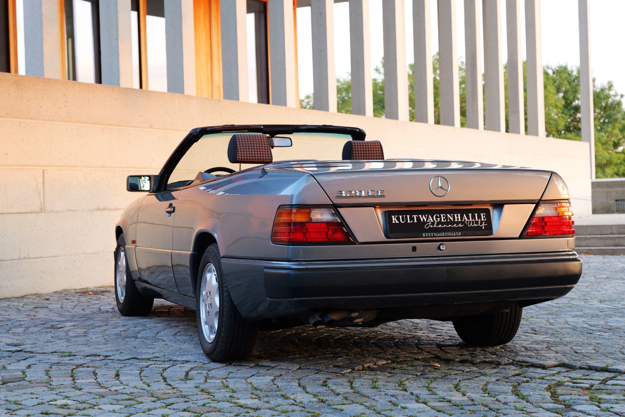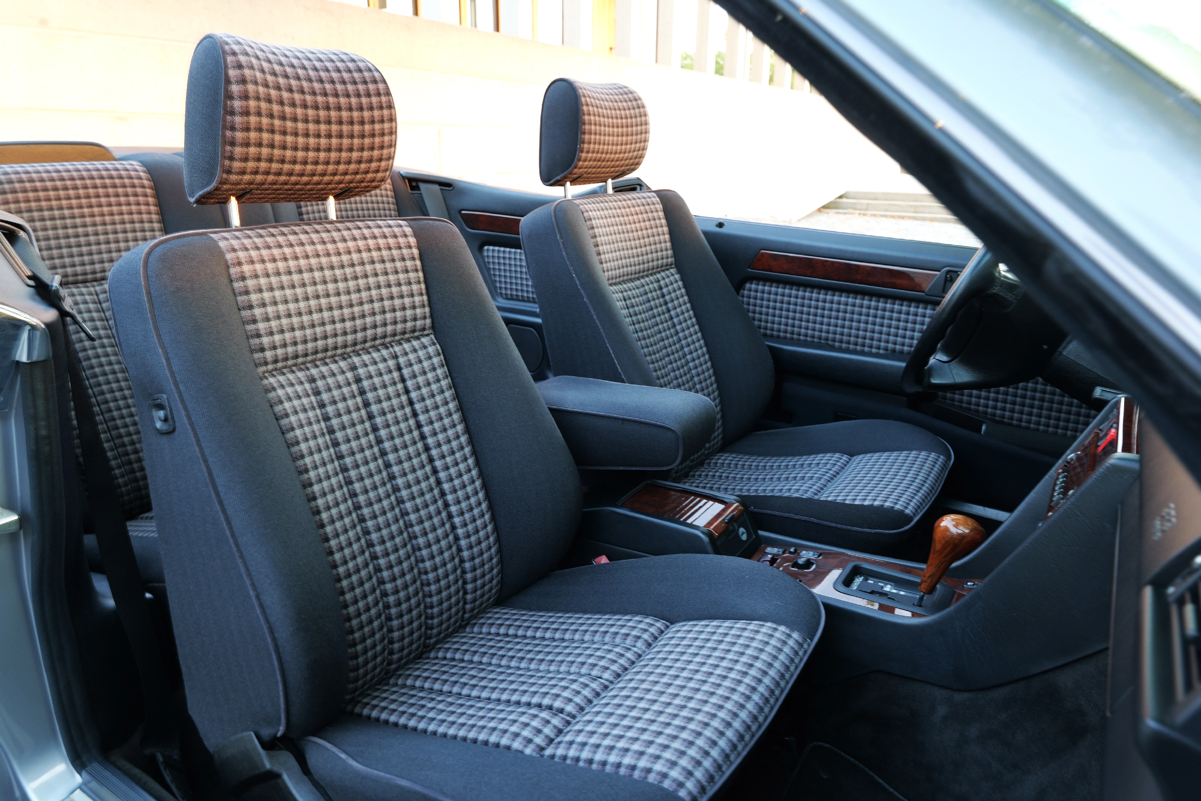 Das hier angebotene Mercedes-Benz 320CE Cabriolet mit einer aktuellen Laufleistung von knapp 83.000 km wurde als Export-Modell für den Japanischen Markt produziert. Während das Cabriolet ab Ende 1991 in Deutschland und in anderen europäischen Staaten zunächst ausschließlich mit dem bereits auslaufenden 3-Liter-Vierventilmotor M104 als 300CE-24 angeboten wurde, kam bei den Exportmodelle für Nordamerika und Japan ab 1992 bereits das neue 3,2-Liter-Triebwerk als 320CE auf den Markt. Der verbesserte M104 E32 Reihen-Sechszylindermotor mit 3199 ccm Hubraum, 220 PS Leistung und 310 Nm Drehmoment zeichnet sich durch eine harmonischere Kraftentfaltung, bereits bei niedrigen Drehzahlen aus. In Verbindung mit dem großen Chromgrill der ersten Modellpflege, gelben Blinkleuchten und einer Lackqualität, die bis dahin noch nicht auf die Wasserbasislacke umgestellt war, sind diese Fahrzeuge selten und beliebt. Die sportlich-elegante Farbkombination aus einer Lackierung in Perlmuttgrau-Metallic (122), Stoff-Sitzen in Karo Schwarz (371) und Zierteilen in der Variante Wurzelholz ist ebenfalls recht selten zu finden.