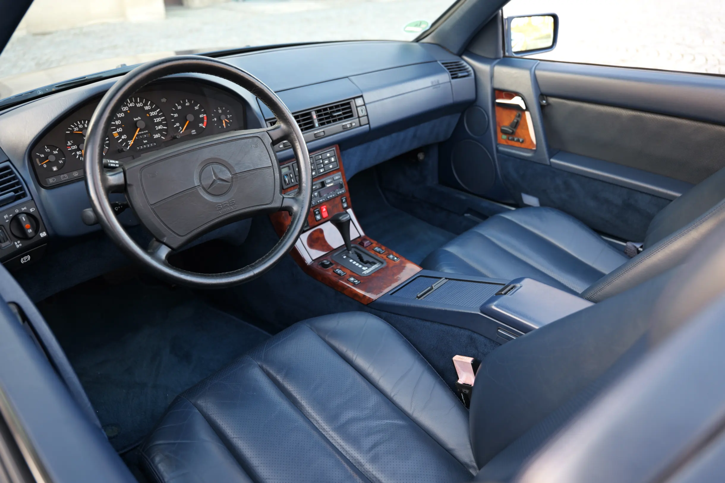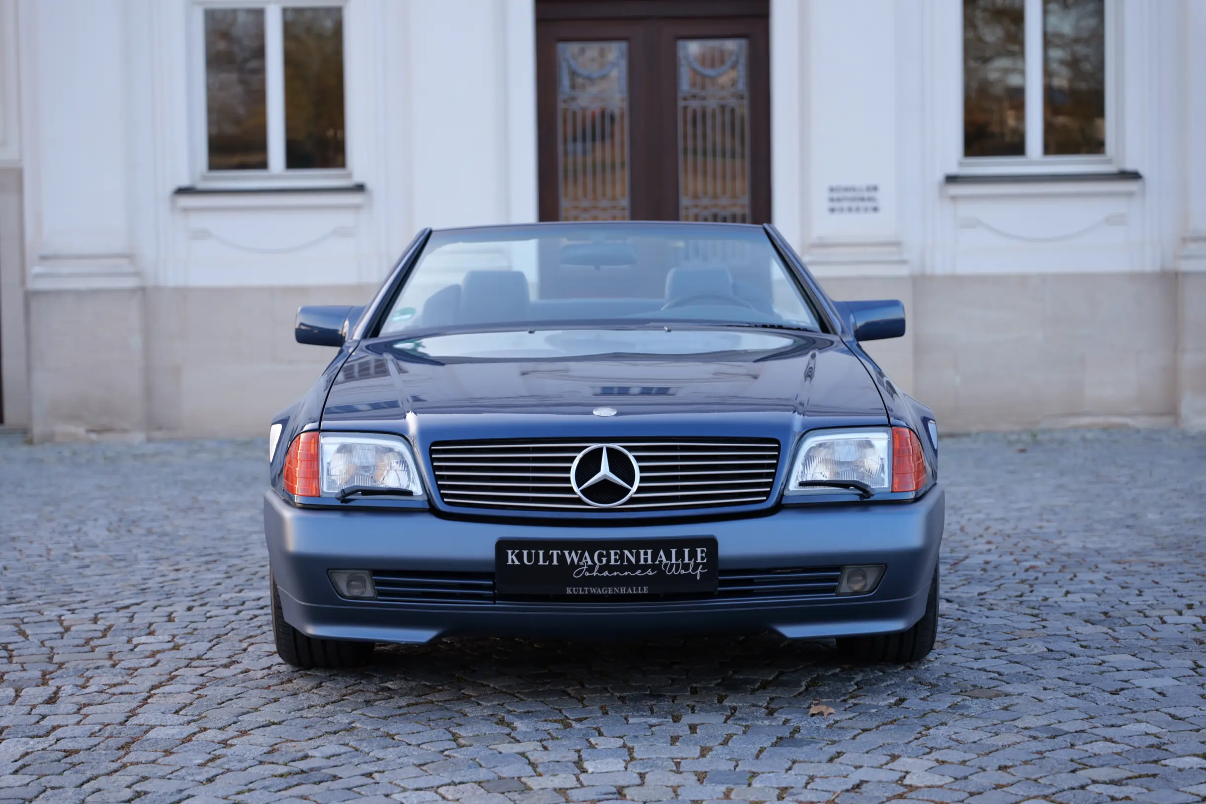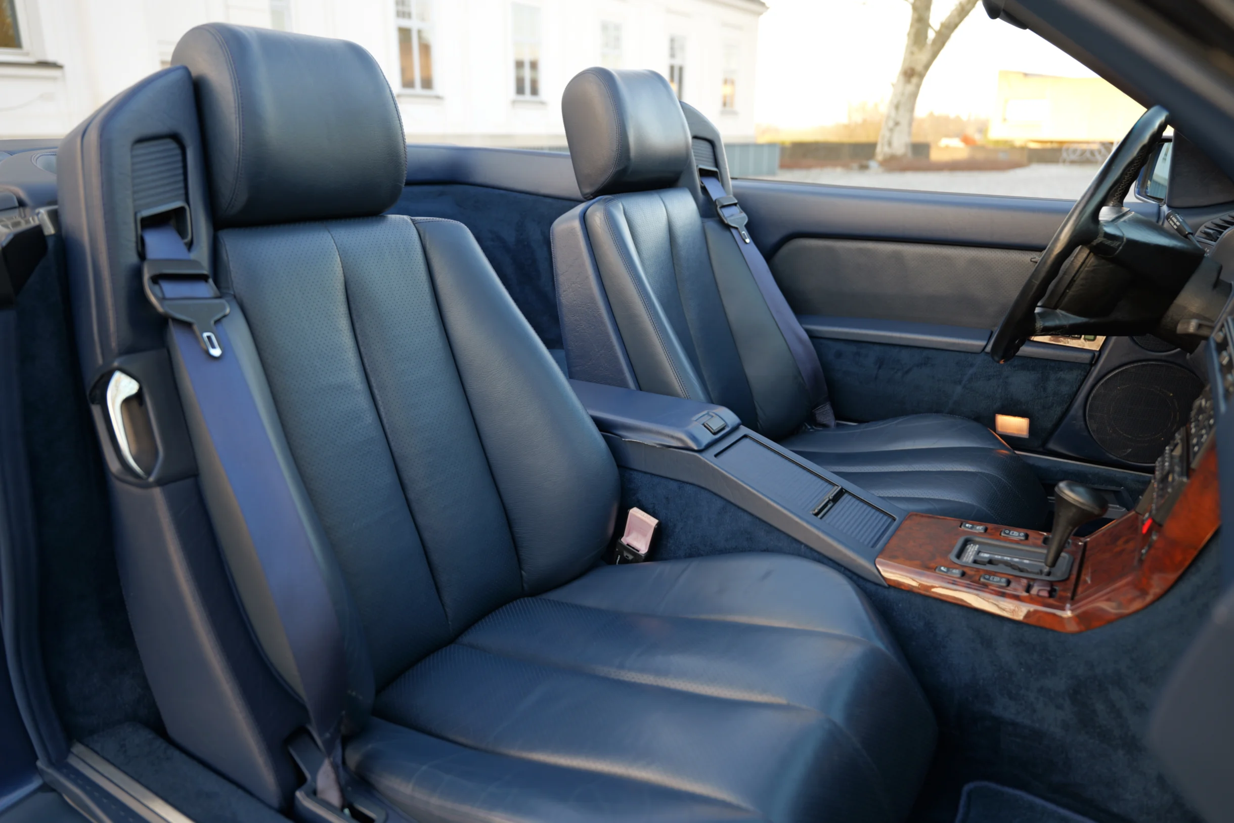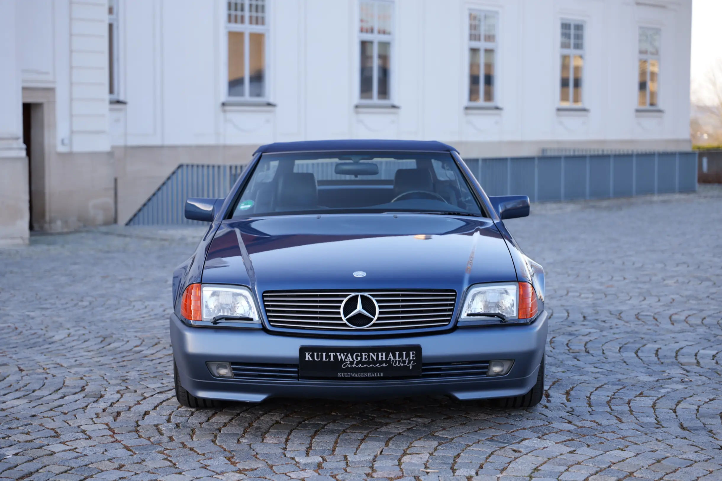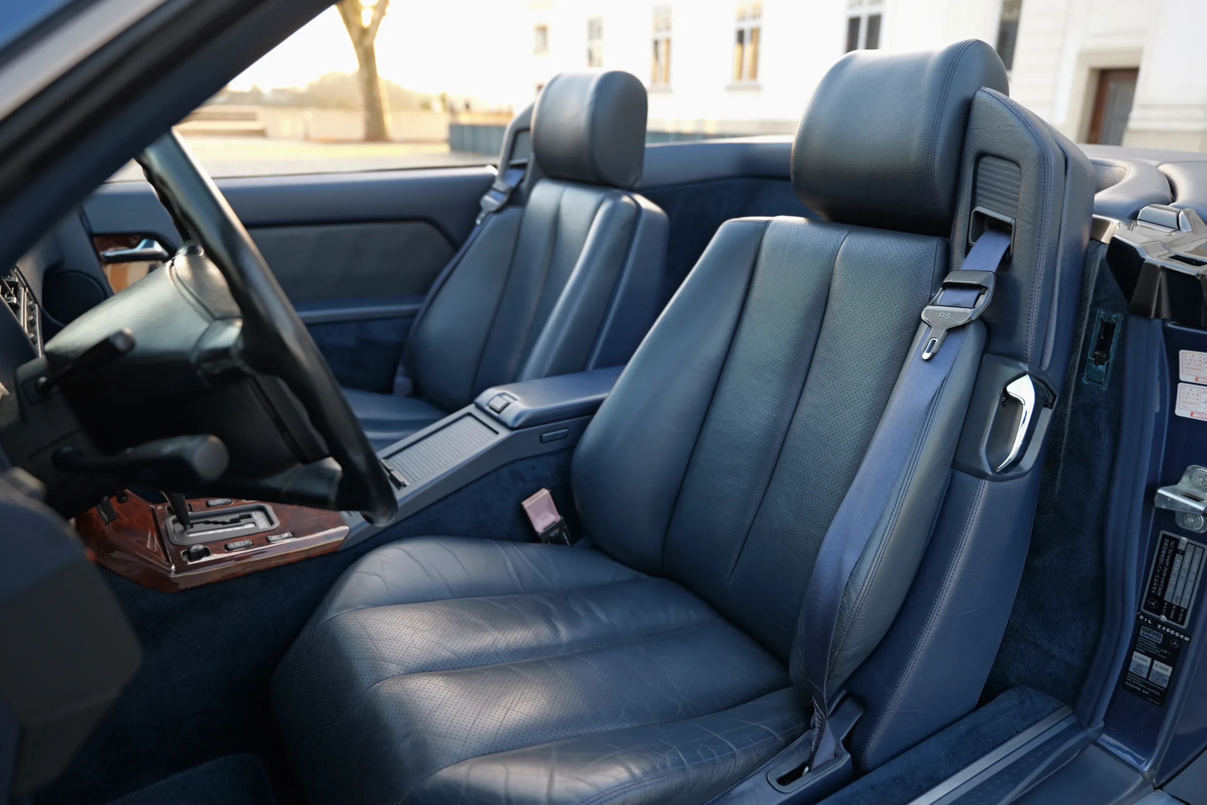 Es wurden keine Kosten und Mühen gescheut und in den vergangenen 5 Jahren fast 20.000 Euro investiert, um den Roadster in den heutigen technischen Bestzustand zu versetzen. Auch alle Hydraulikzylinder vom Verdeck wurden bereits erneuert. Mit einer aktuellen Laufleistung von lediglich 39.324 km ist dieser R129 eine Ausnahmeerscheinung. Die Lackierung in der Farbe Nautikblau-Metallic (929) befindet sich in einem einwandfreien Zustand. Der Innenraum mit den farblich hervorragend abgestimmten Sitzbezüge in Leder Blau (272) weist nur sehr geringe Gebrauchsspuren auf. Der beliebte und kraftvolle M119 E50 V8-Ottomotor mit 4973 cm³ Hubraum, 326 PS Leistung und 480 Nm Drehmoment sorgt in Verbindung mit dem Automatikgetriebe stets für souveränen Vortrieb. Der edle und sehr originale Mercedes-Benz 500SL Roadster hat aktuell noch TÜV bis September 2026 und wird seinem neuen Besitzer sicherlich noch sehr viel Freude und Fahrspaß bereiten.