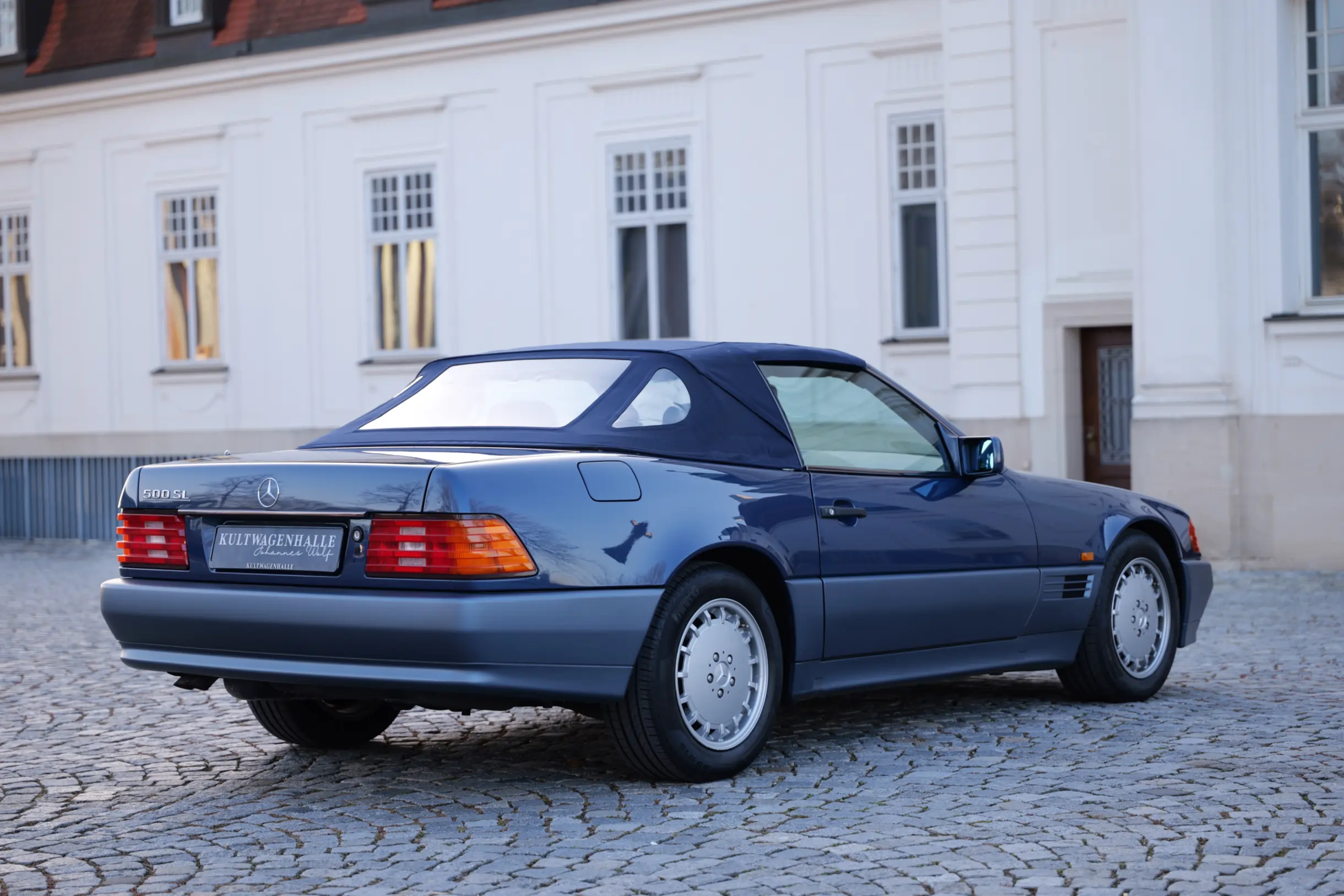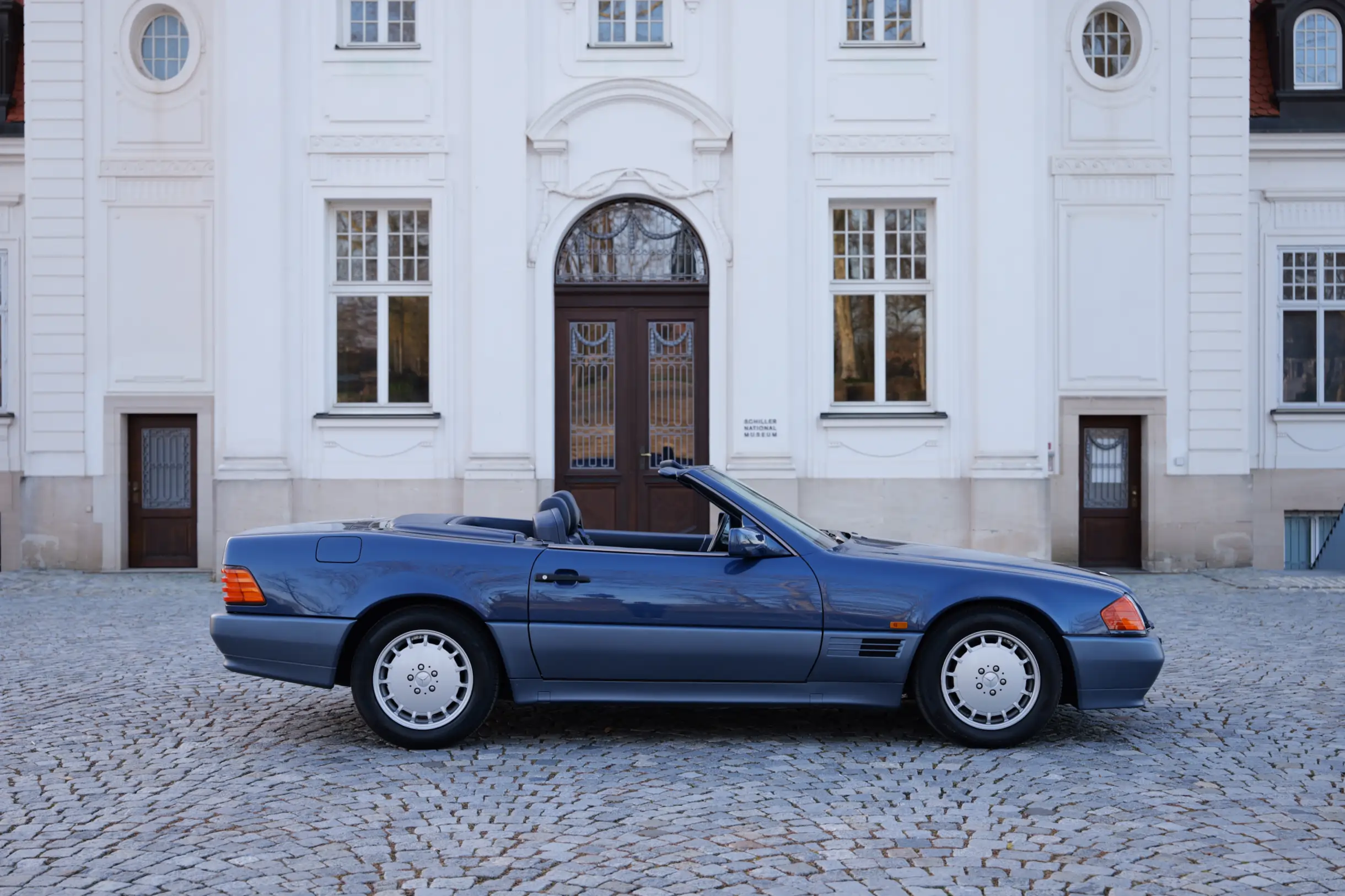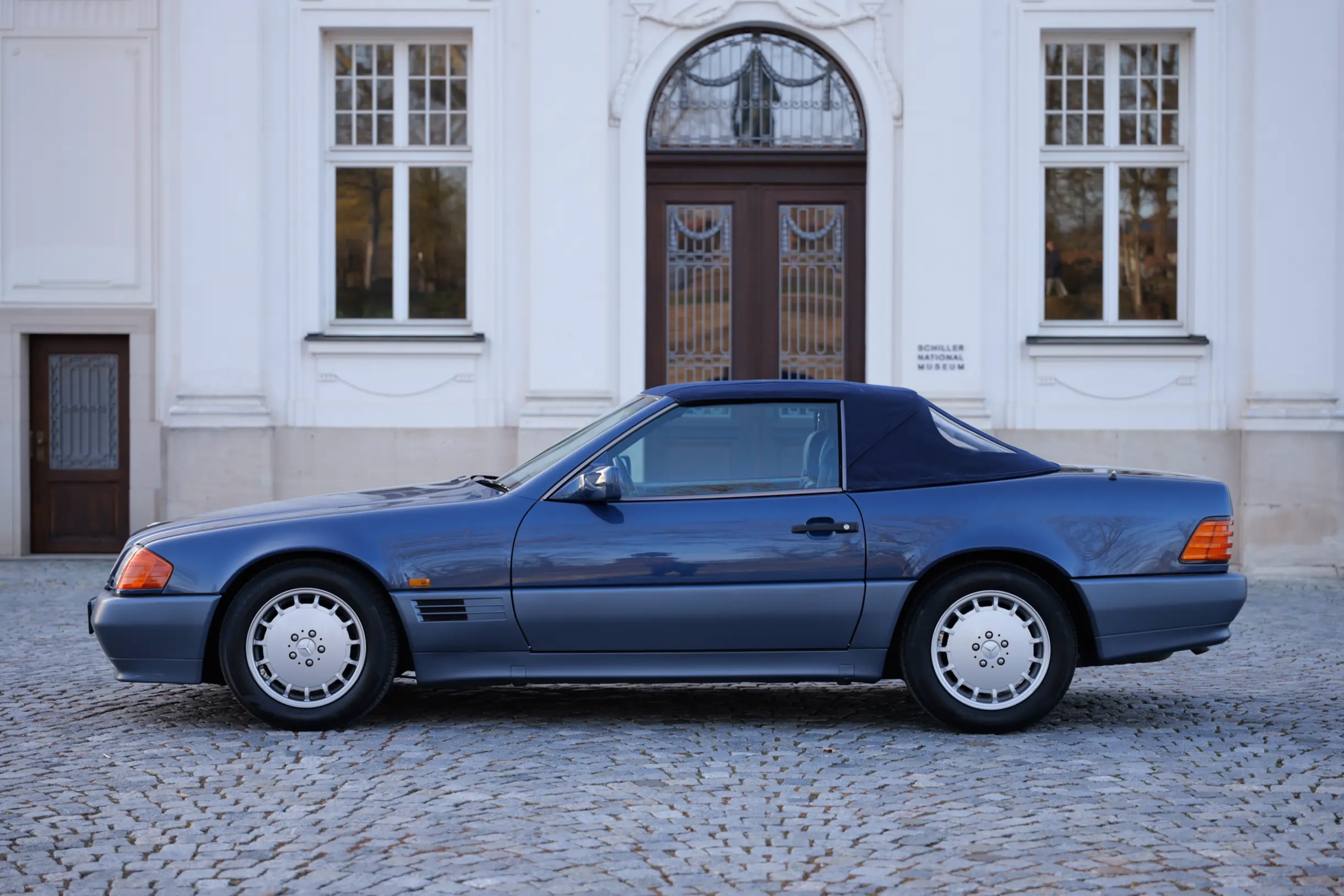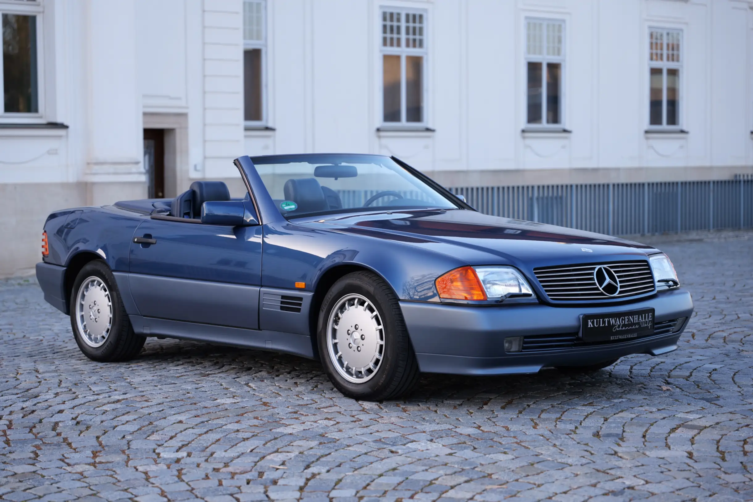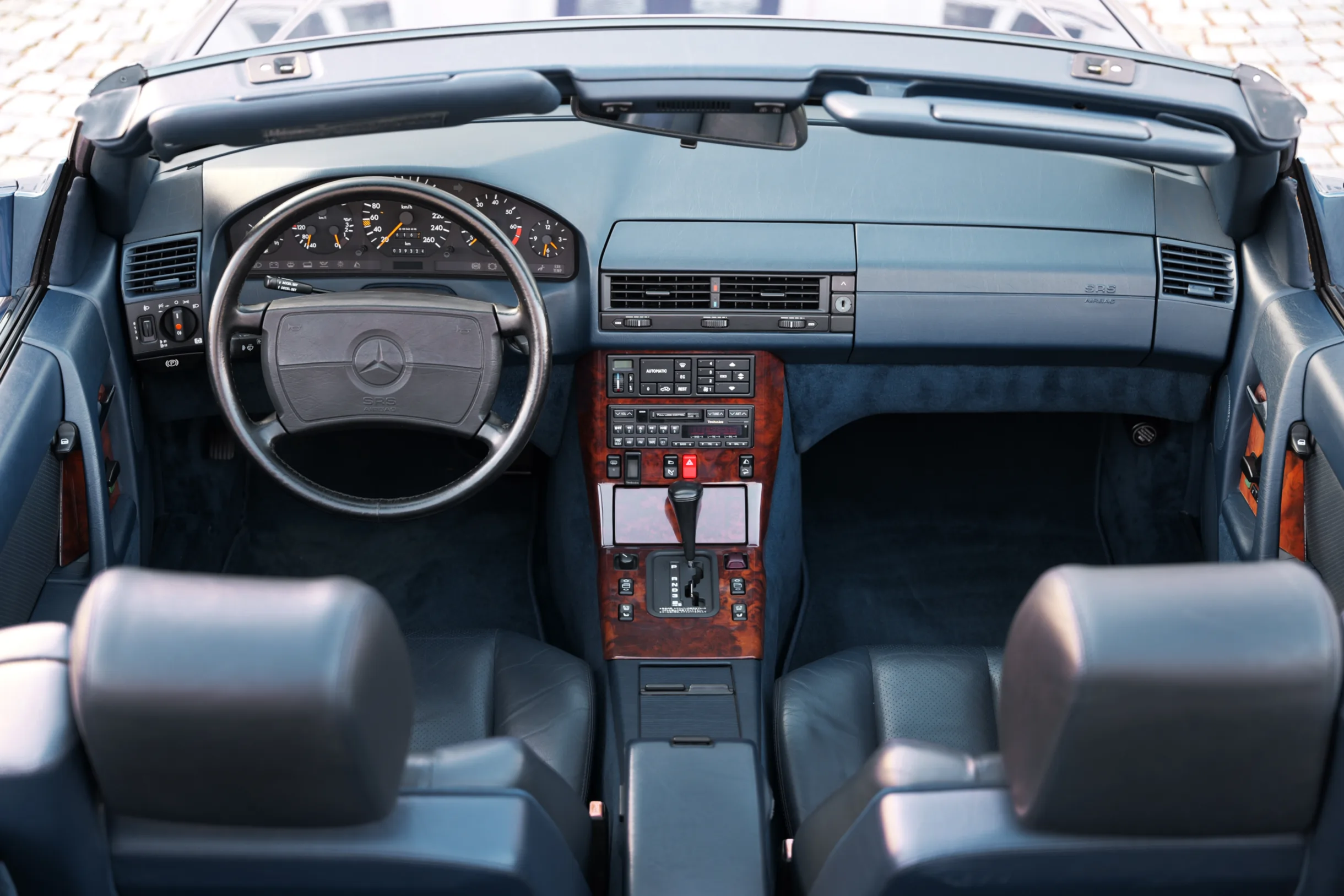 Es wurden keine Kosten und Mühen gescheut und in den vergangenen 5 Jahren fast 20.000 Euro investiert, um den Roadster in den heutigen technischen Bestzustand zu versetzen. Auch alle Hydraulikzylinder vom Verdeck wurden bereits erneuert. Mit einer aktuellen Laufleistung von lediglich 39.324 km ist dieser R129 eine Ausnahmeerscheinung. Die Lackierung in der Farbe Nautikblau-Metallic (929) befindet sich in einem einwandfreien Zustand. Der Innenraum mit den farblich hervorragend abgestimmten Sitzbezüge in Leder Blau (272) weist nur sehr geringe Gebrauchsspuren auf. Der beliebte und kraftvolle M119 E50 V8-Ottomotor mit 4973 cm³ Hubraum, 326 PS Leistung und 480 Nm Drehmoment sorgt in Verbindung mit dem Automatikgetriebe stets für souveränen Vortrieb. Der edle und sehr originale Mercedes-Benz 500SL Roadster hat aktuell noch TÜV bis September 2026 und wird seinem neuen Besitzer sicherlich noch sehr viel Freude und Fahrspaß bereiten.