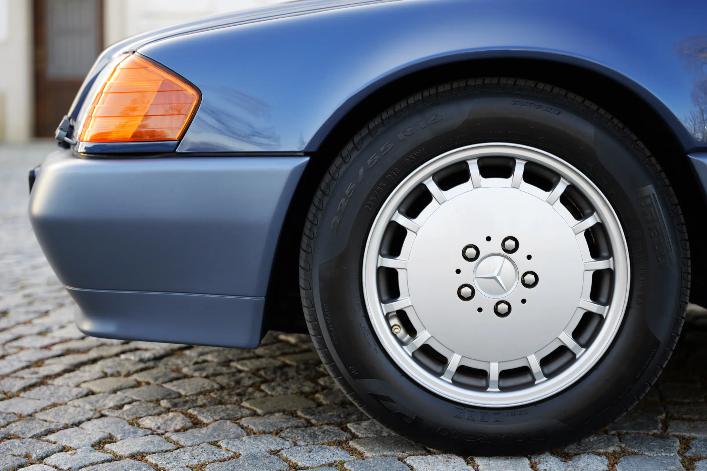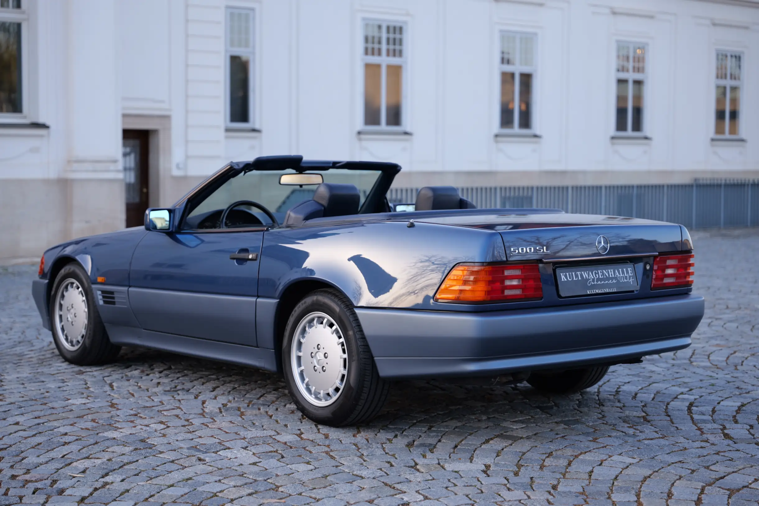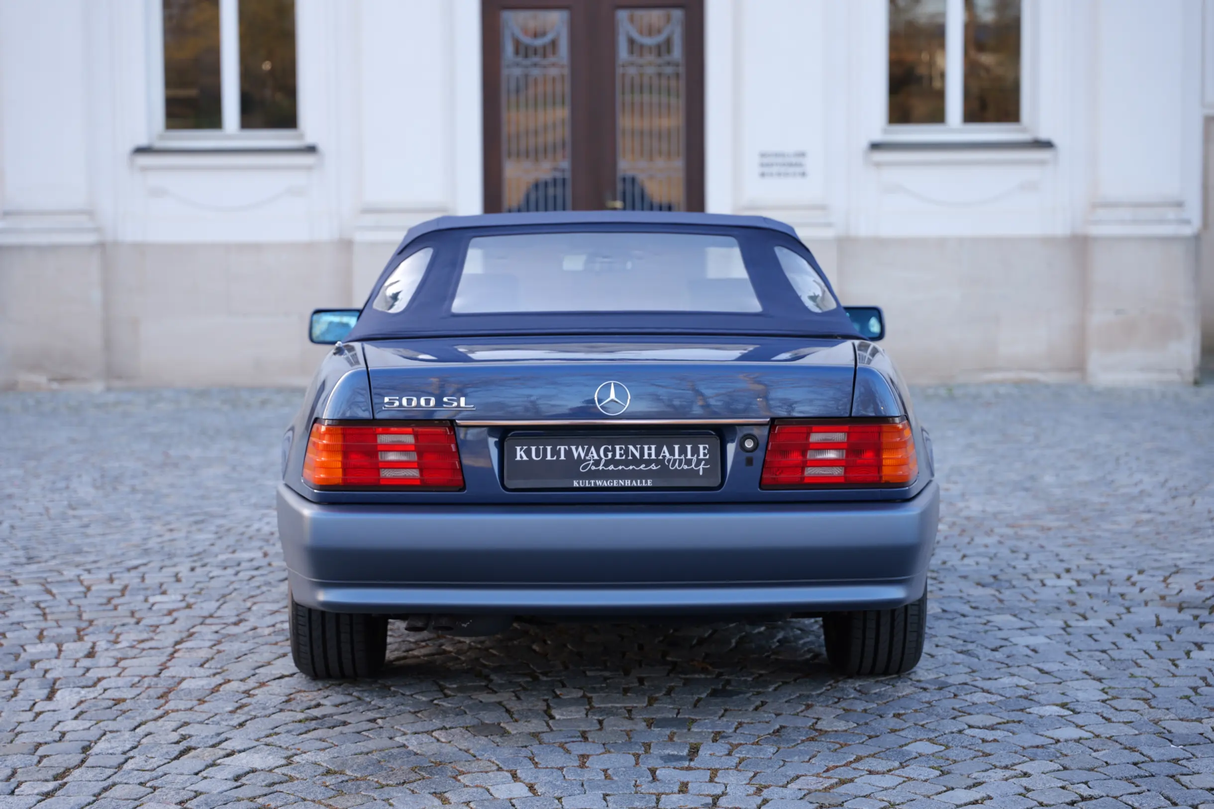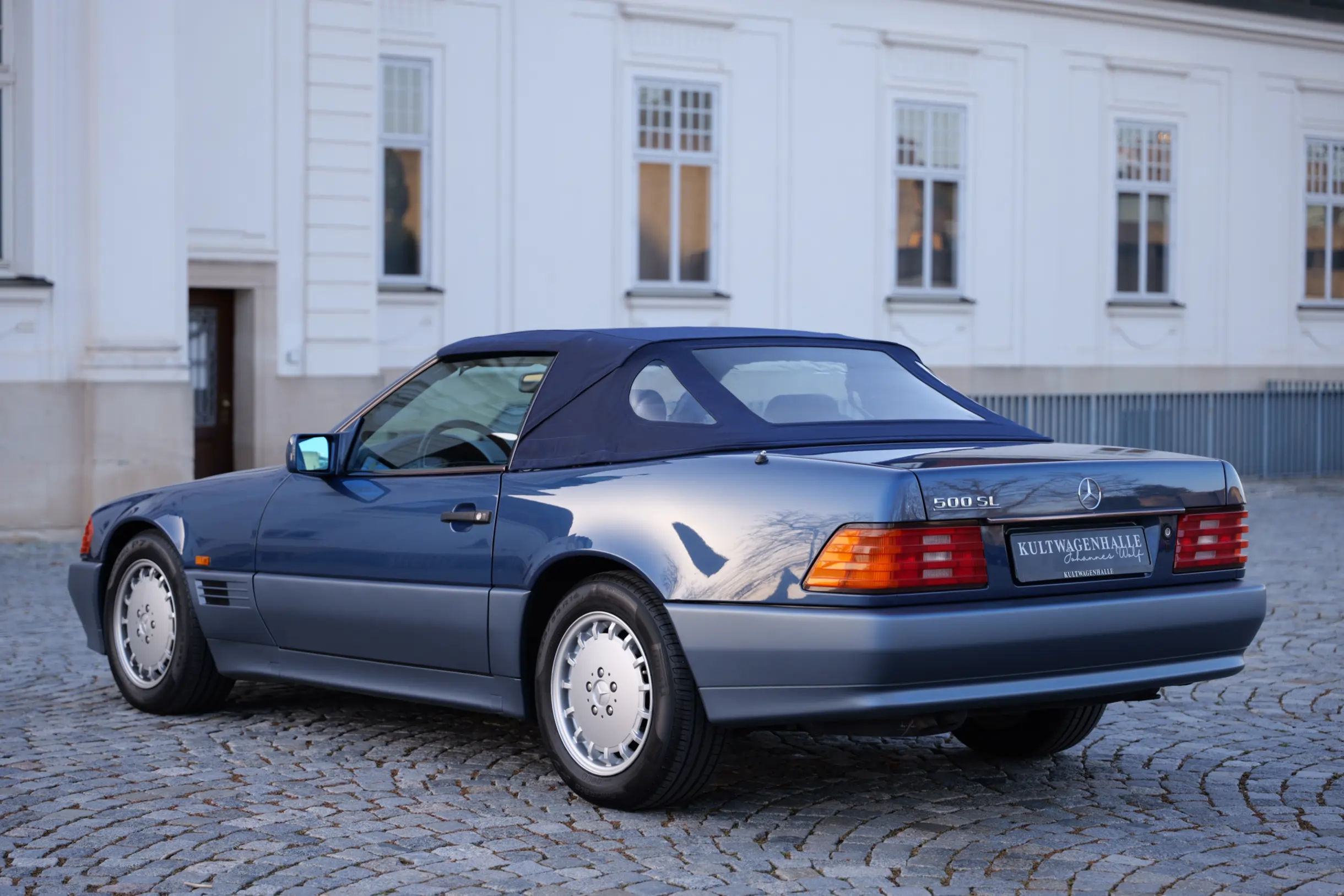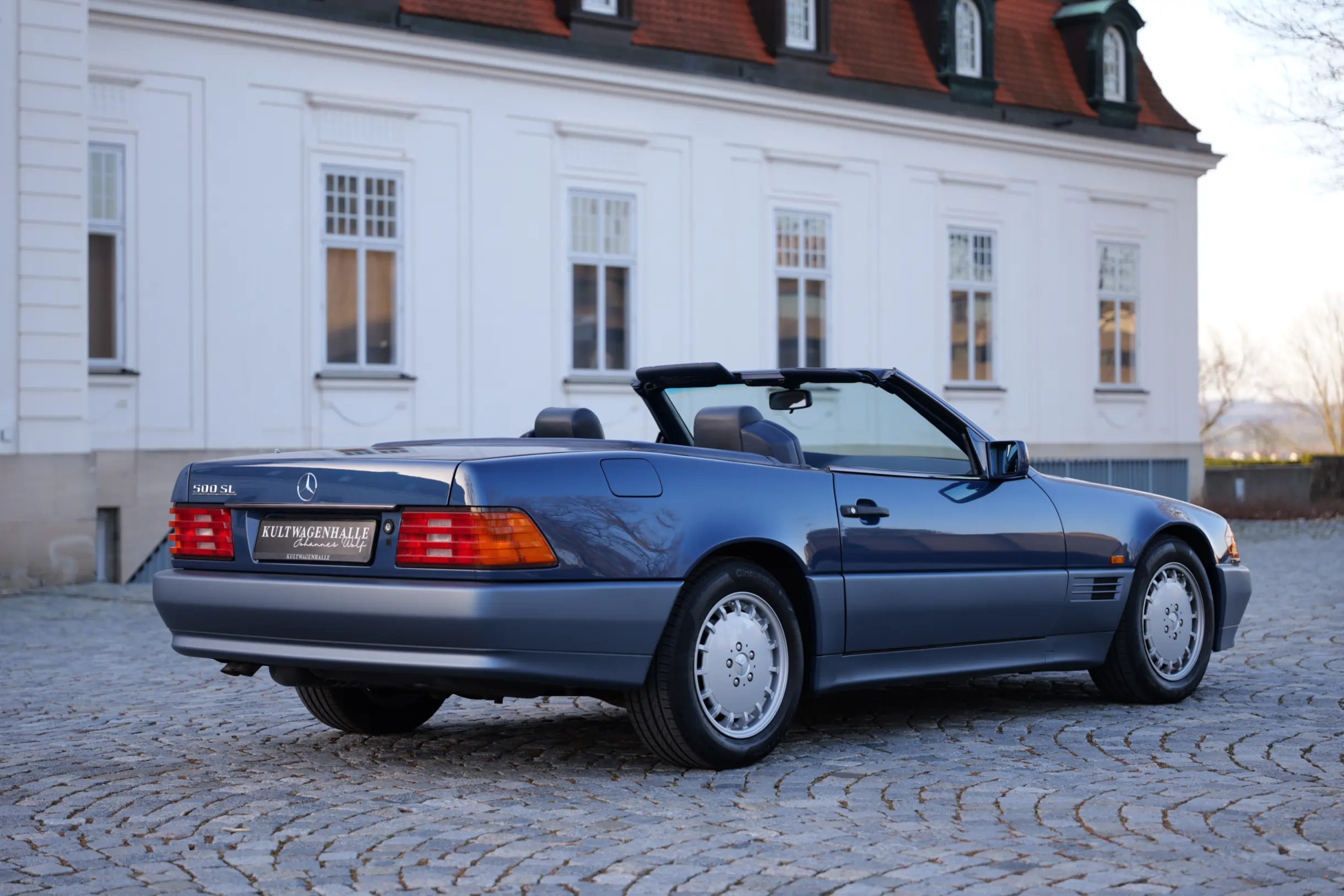 Es wurden keine Kosten und Mühen gescheut und in den vergangenen 5 Jahren fast 20.000 Euro investiert, um den Roadster in den heutigen technischen Bestzustand zu versetzen. Auch alle Hydraulikzylinder vom Verdeck wurden bereits erneuert. Mit einer aktuellen Laufleistung von lediglich 39.324 km ist dieser R129 eine Ausnahmeerscheinung. Die Lackierung in der Farbe Nautikblau-Metallic (929) befindet sich in einem einwandfreien Zustand. Der Innenraum mit den farblich hervorragend abgestimmten Sitzbezüge in Leder Blau (272) weist nur sehr geringe Gebrauchsspuren auf. Der beliebte und kraftvolle M119 E50 V8-Ottomotor mit 4973 cm³ Hubraum, 326 PS Leistung und 480 Nm Drehmoment sorgt in Verbindung mit dem Automatikgetriebe stets für souveränen Vortrieb. Der edle und sehr originale Mercedes-Benz 500SL Roadster hat aktuell noch TÜV bis September 2026 und wird seinem neuen Besitzer sicherlich noch sehr viel Freude und Fahrspaß bereiten.