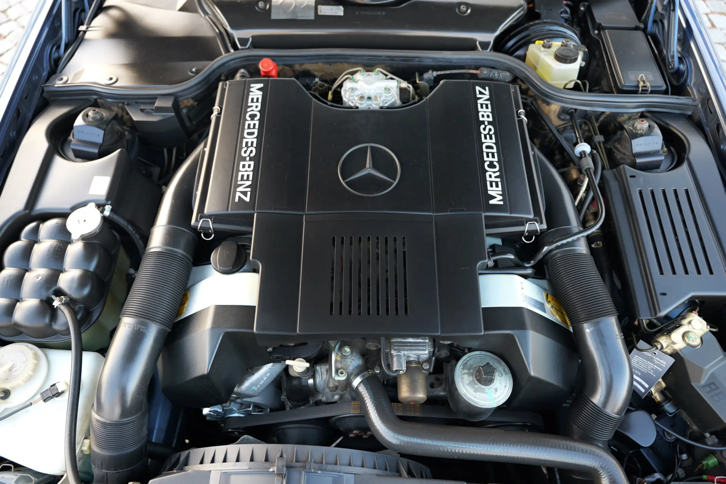 Auch der komplett neu konstruierte M119 V8-Vierventilmotor sorgte für großes Aufsehen und machte den R129 zum leistungsstärksten Mercedes-Benz Serien-PKW seiner Zeit. Selbstverständlich steckte auch viel raffinierte Technik im neuen SL. Um die Insassen des Cabrios im Falle eines Überschlags bestmöglich zu schützen, konnte der automatische Überrollbügel innerhalb von 0,3 Sekunden hochschnellen. Neu waren auch die innovativen Integralsitze mit integriertem Gurt und deutlich verbessertem Seitenhalt. Ein serienmäßig mitgeliefertes Hardtop verwandelte das Fahrzeug in den Wintermonaten zudem in ein edles Coupé.