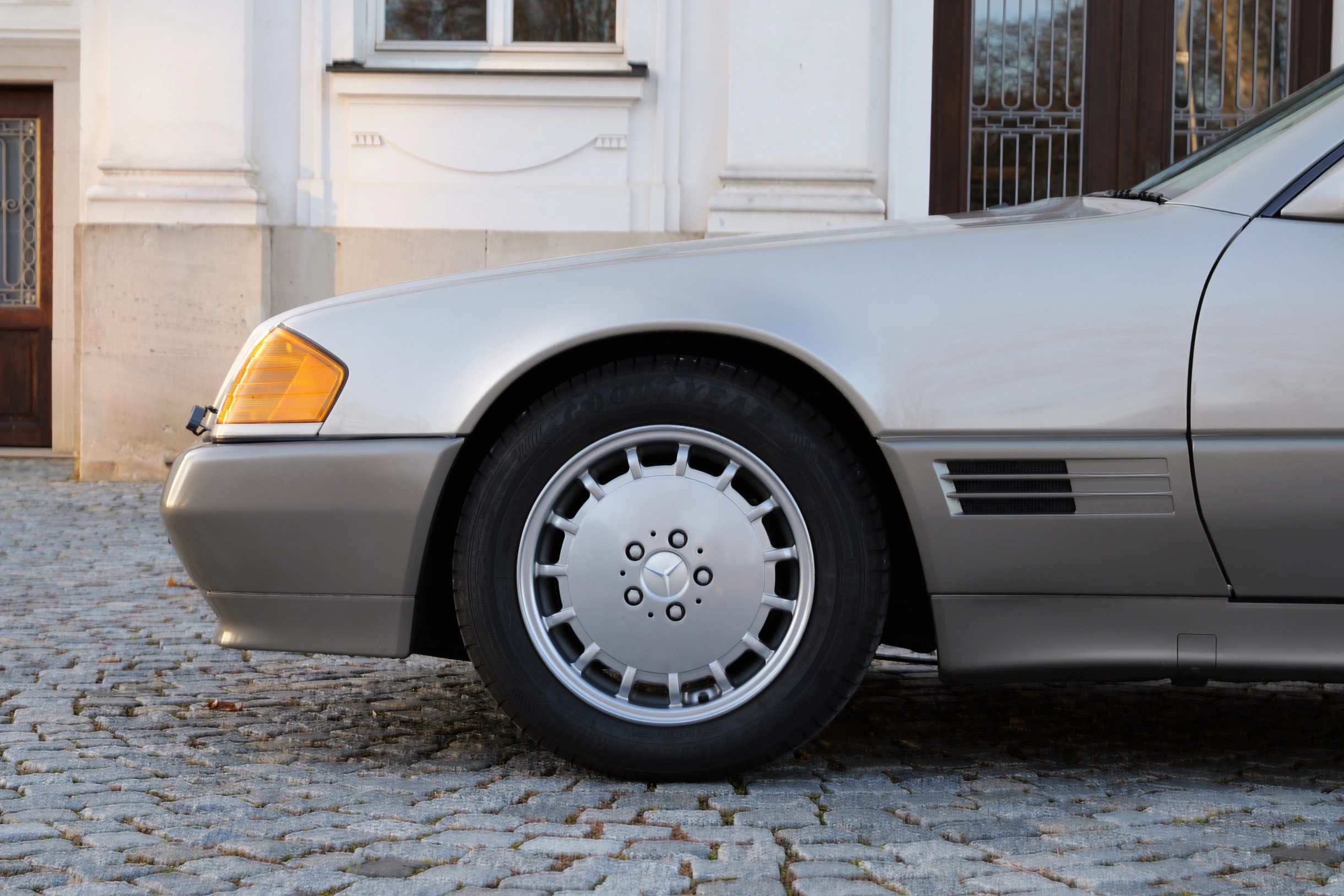 Der hier angebotene Mercedes-Benz 500SL aus dem Jahr 1990 fasziniert mit einer belegbaren Laufleistung von nur 872 Meilen bzw. 1.403 km und präsentiert sich nahezu im Neuwagenzustand. Gebrauchsspuren sind am Fahrzeug gar nicht zu entdecken. Die Lackierung in der edlen Farbe Rauchsilber-Metallic (702) befindet sich selbstverständlich im Erstlack. Das originale Hardtop und das dunkelbraune Stoffverdeck sind ebenfalls ohne jegliche Mängel. Der hervorragend erhaltene Innenraum in der Farbe Leder Beige (275) rundet das elegante Erscheinungsbild dieses SL-Roadsters ab. Und auch der Zustand im Motorraum ist absolut bemerkenswert. Hier sorgt der beliebte und kraftvolle M119 E50 V8-Ottomotor mit 4973 ccm Hubraum, 326 PS Leistung und 480 Nm Drehmoment für souveränen Vortrieb. Auch die lange Ausstattungsliste lässt kaum Wünsche offen. Die Auslieferung erfolgte im Februar 1990 über den Mercedes-Benz Händler Barrier Motors Inc. in Bellevue im Bundesstaat Washington. Das vorliegende Carfax zeigt zwei Service-Einträge in Knoxville, Tennessee und belegt die extrem geringe Laufleistung. 2014 kommt das Fahrzeug über die Niederlande als Reimport nach Deutschland in die Sammlung eines Mercedes-Benz Händlers in Kaiserslautern und wird im August 2019 erstmals zugelassen. Im Juli 2020 gelangt das Sammlerfahrzeug an seinen bislang letzten Eigentümer aus Karlsfeld bei Dachau und wird im Mai 2022 nochmals zugelassen.