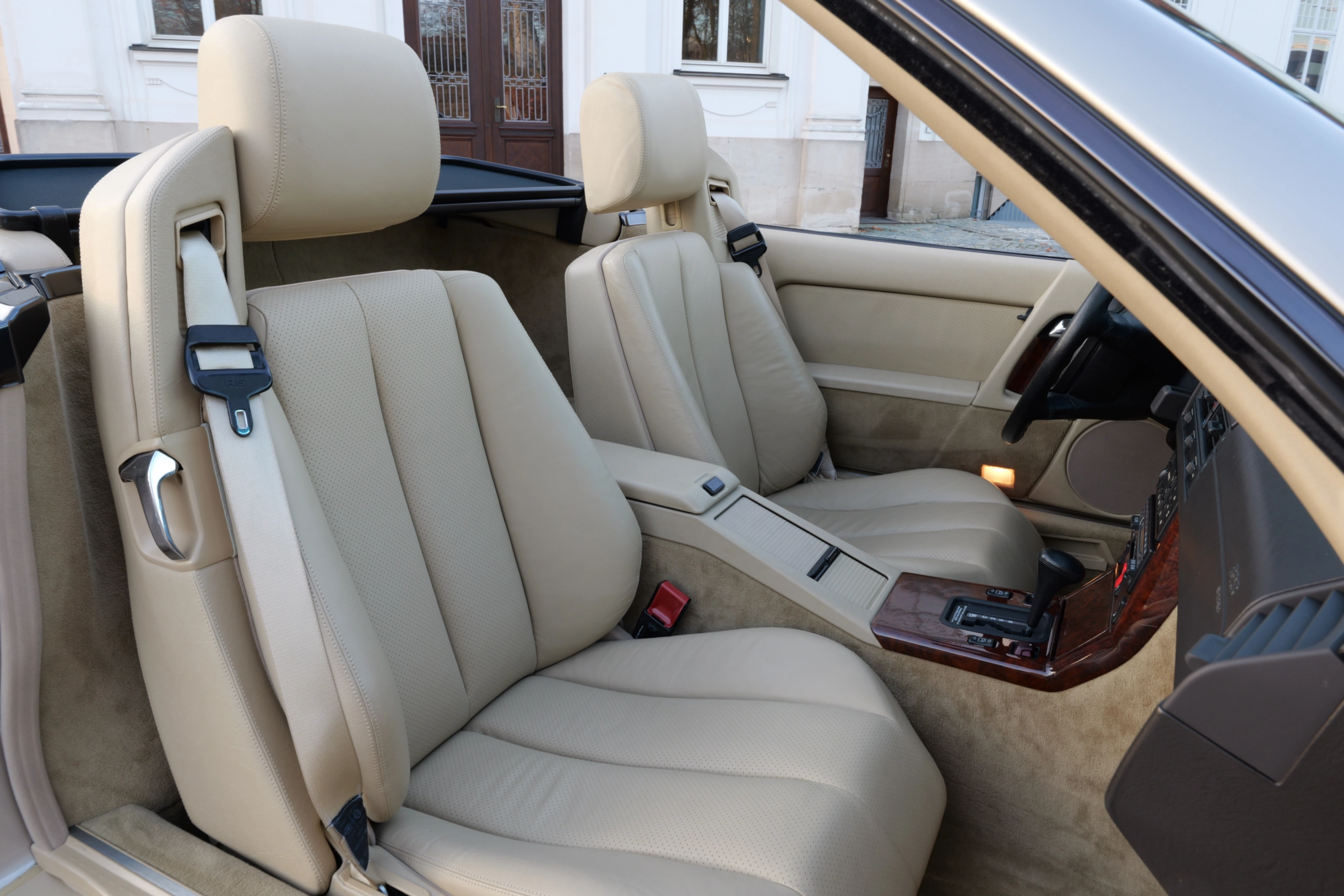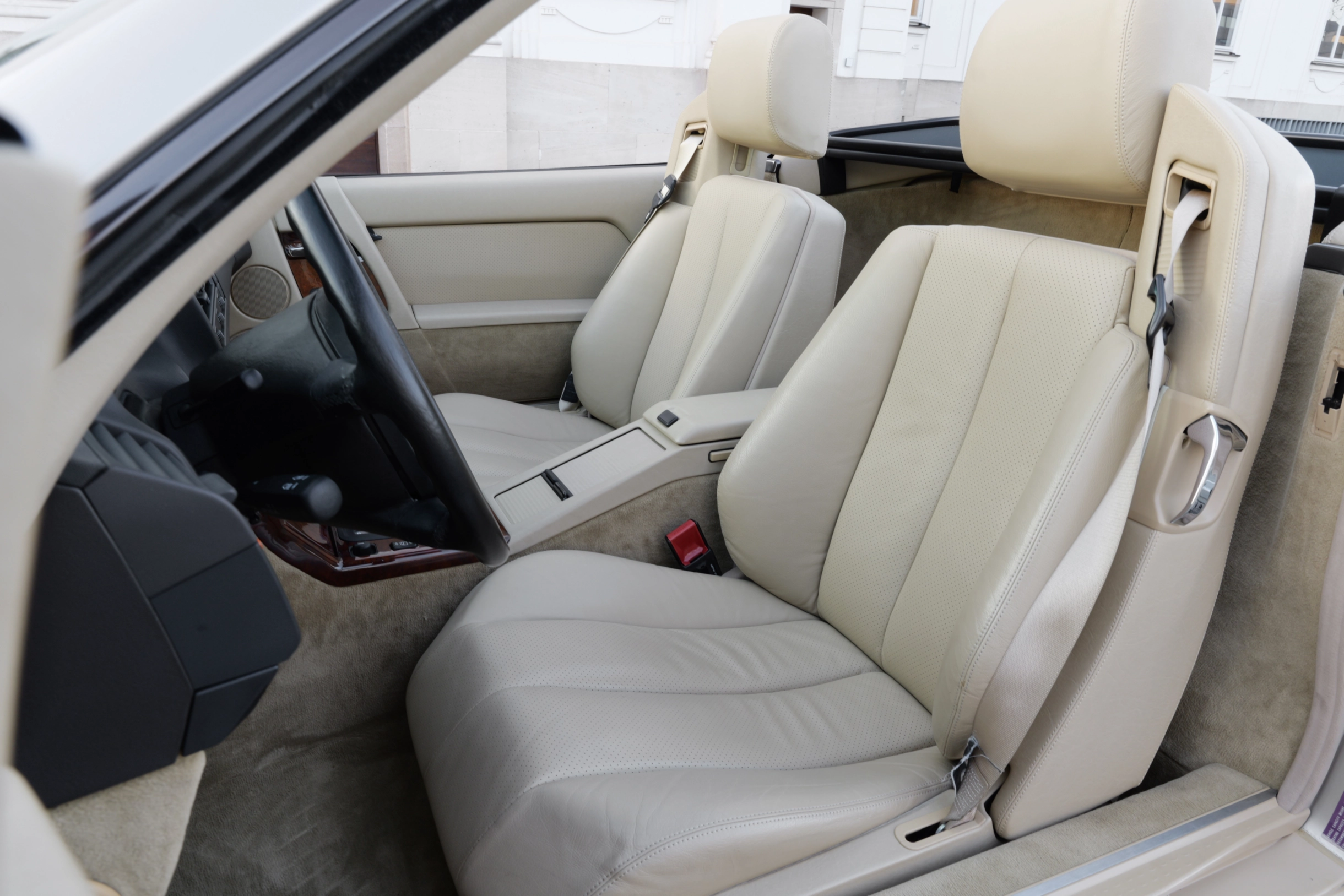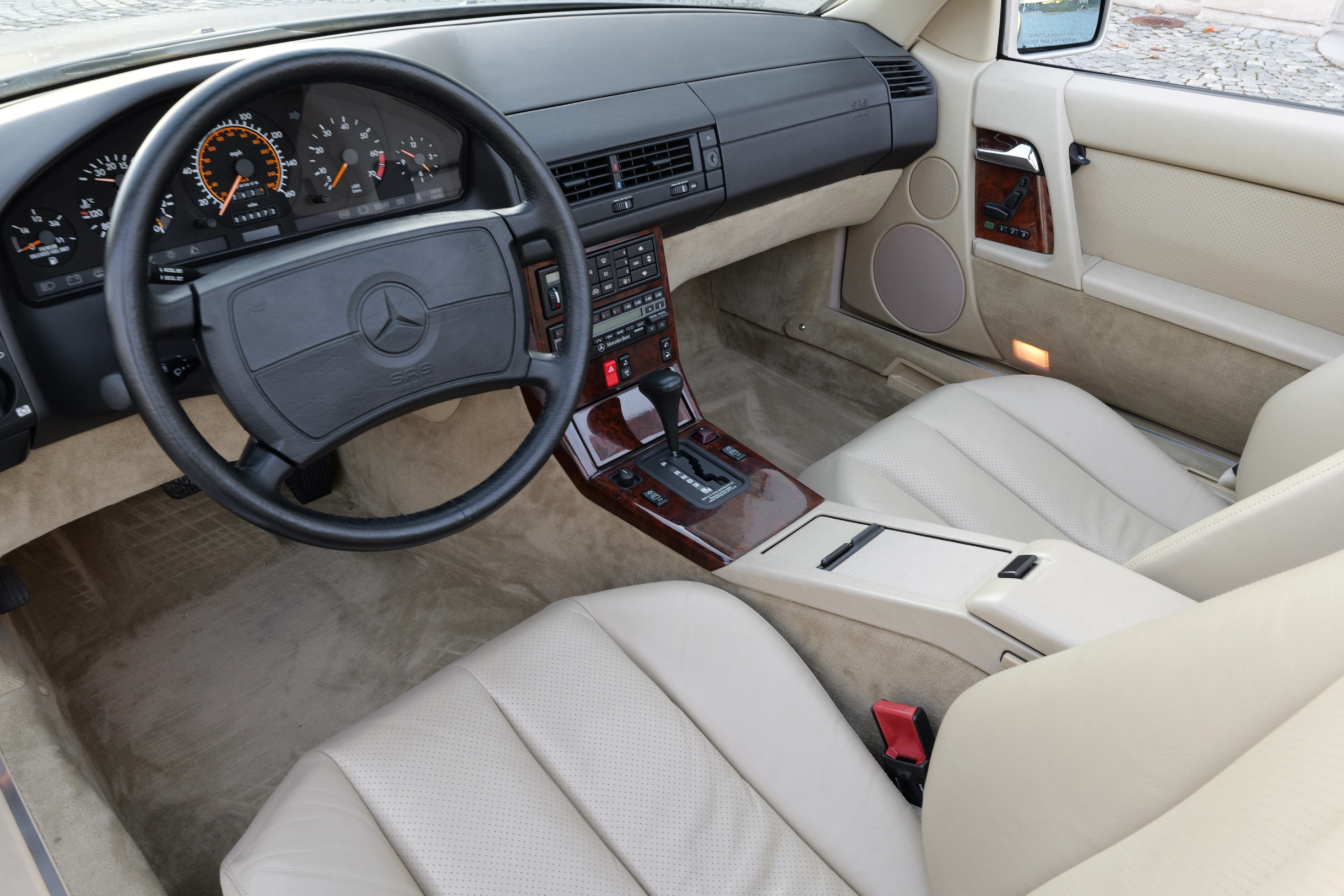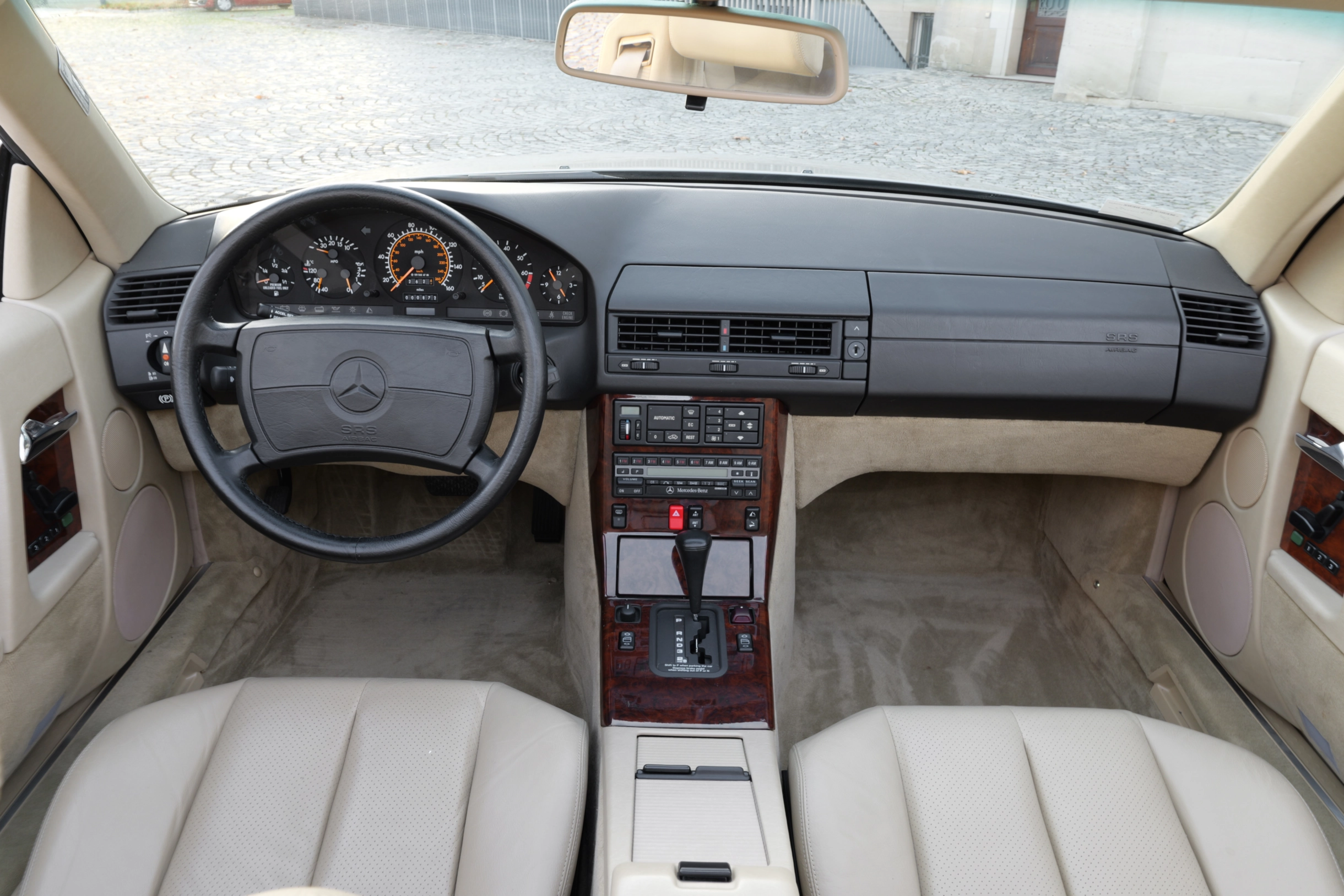 Die Weltpremiere der neuen SL-Baureihe R129 auf dem Genfer Automobil-Salon im März 1989 war eine der Hauptattraktionen. Das von Bruno Sacco entworfene Karosserie-Design reihte sich stilistisch in die bestehenden Mercedes-Modelle ein und verzichtete weitestgehend auf Chromschmuck. Mit einem selbstbewußten, kraftvollen Auftritt und einer harmonischen und zeitlos schlichten Linienführung überzeugte der Roadster seine Zielgruppe von Beginn an. Auch der komplett neu konstruierte M119 V8-Vierventilmotor sorgte für großes Aufsehen und machte den SL zum leistungsstärksten Mercedes-Benz Serien-PKW seiner Zeit. Aufgrund der enorm hohen Nachfrage hatte der neue SL-Roadster anfangs eine Lieferzeit von unfassbaren sieben Jahren.