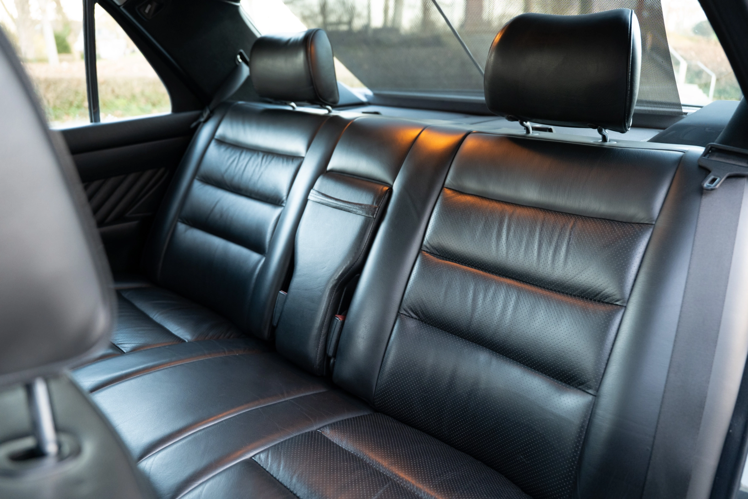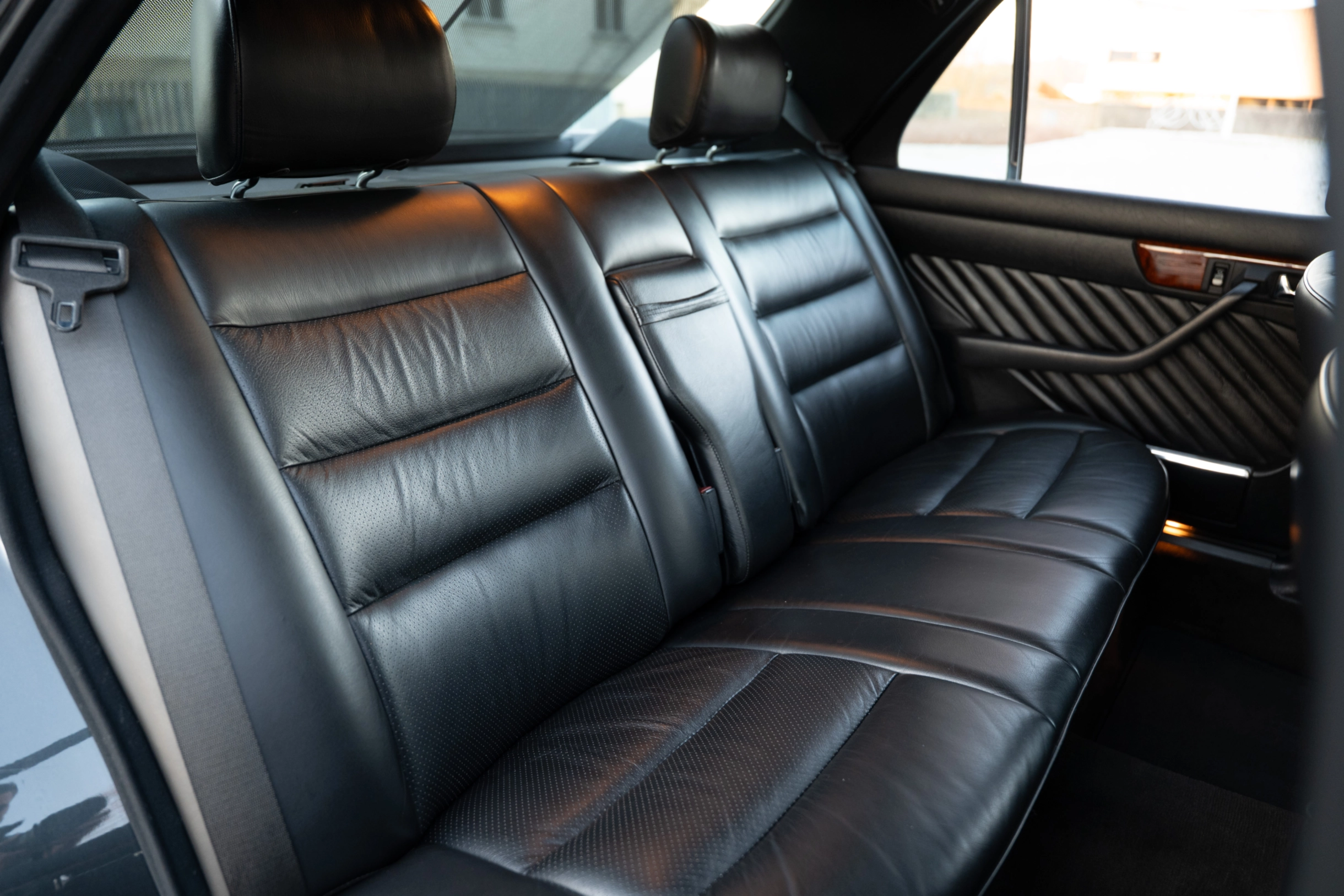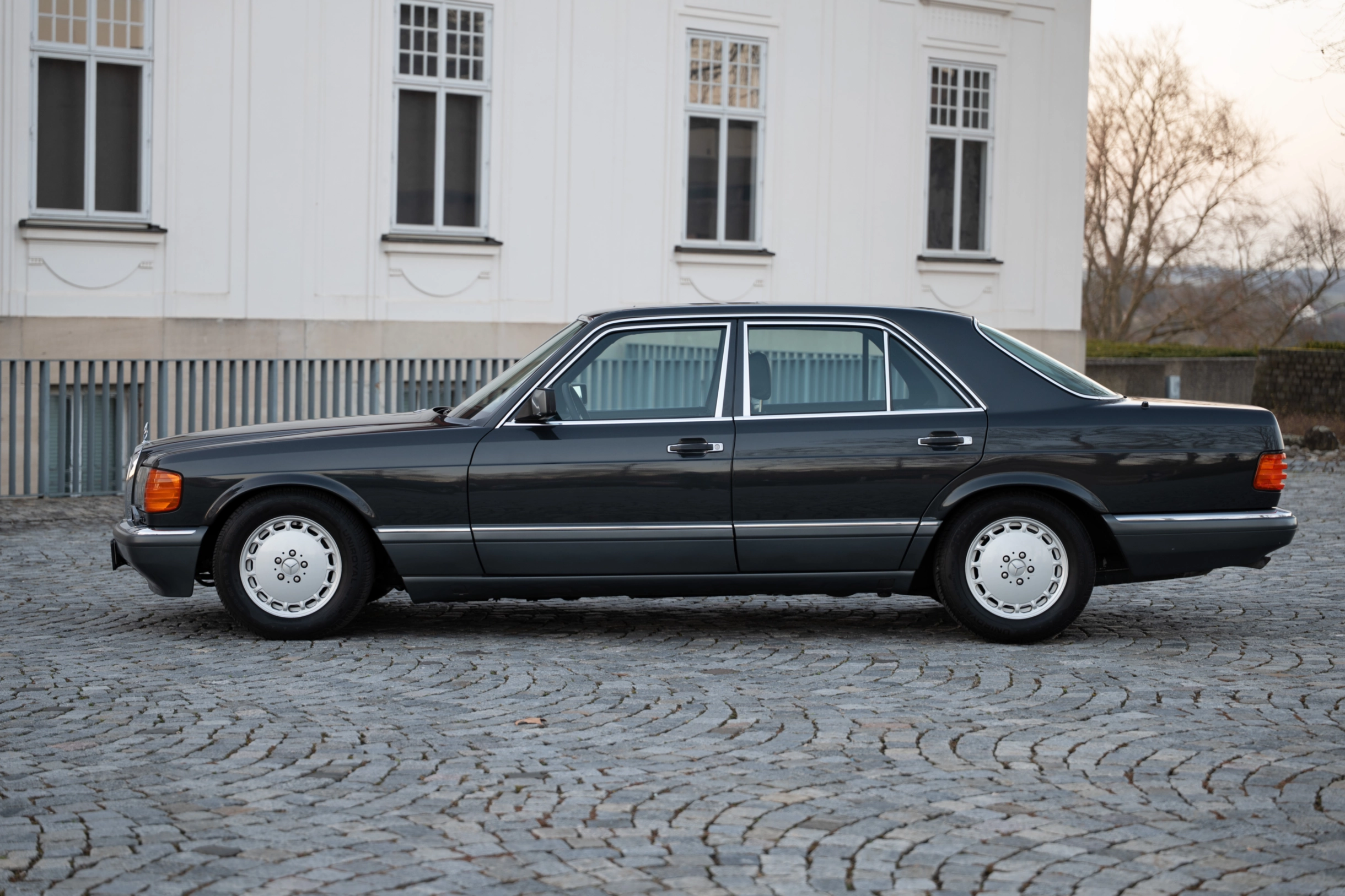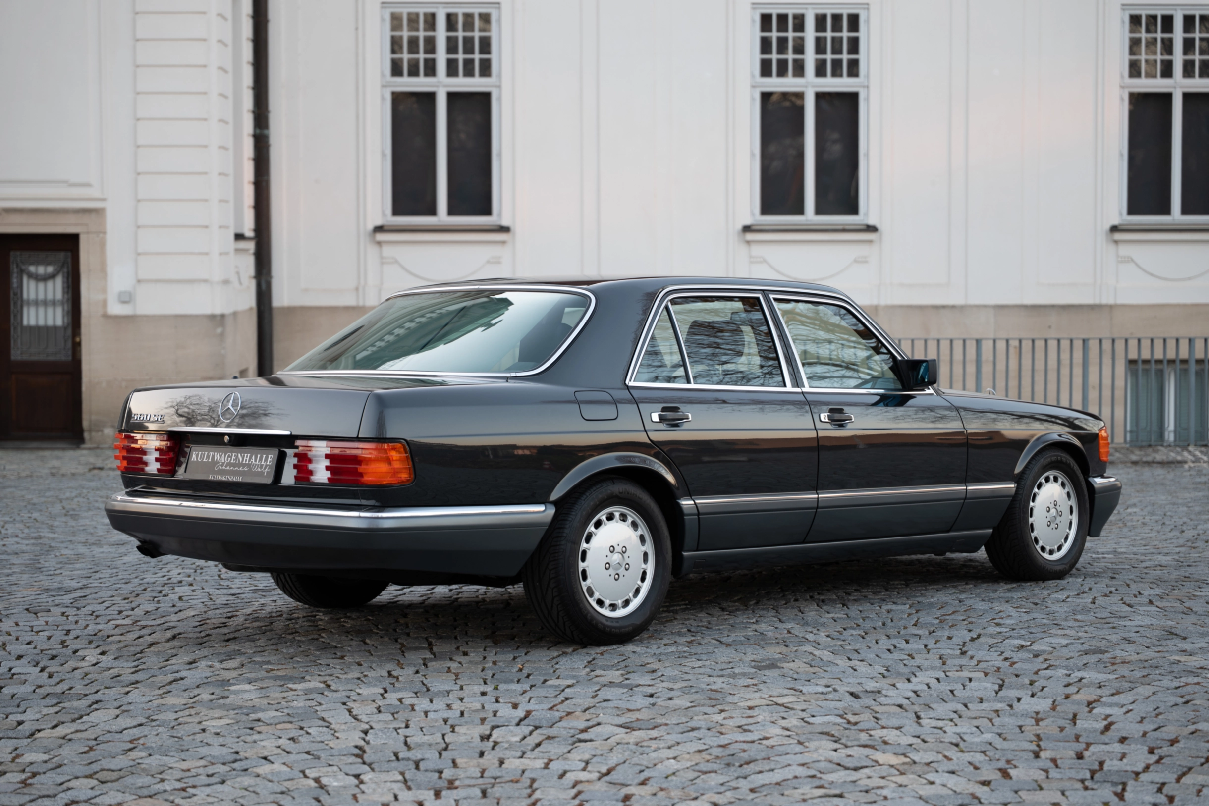 Der hier angebotene Mercedes-Benz 560SE der Baureihe W126 ist aufgrund der geringen Stückzahl ein recht seltenes Exemplar. Er wurde über die Niederlassung in München ausgeliefert und im August 1989 erstmals zugelassen. Nach über 20 Jahren wurde die Limousine im Mai 2011 an seinen zweiten Eigentümer in Trittau, östlich von Hamburg, verkauft. Hier wurde das Fahrzeug mit einem Saisonkennzeichen von April bis September nur bei schönem Wetter gefahren. Der dritte und aktuelle Eigentümer aus Stuttgart erwarb die gepflegte S-Klasse im Juli 2021. Mit einer aktuellen Laufleistung von nur 102.120 km befindet sich die Lackierung in der edlen Farbe Blauschwarz-Metallic (199) noch in einem sehr schönen Zustand. Die Innenausstattung in Leder Schwarz (261) zeigt nur geringe Gebrauchsspuren und die vorderen Passagiere werden mit orthopädischen Einzelsitzen und Sitzheizung verwöhnt. An heißen Sommertagen sorgt die Klimaanlage, die erst im Mai 2024 neu gefüllt wurde, für erfrischende Abkühlung.