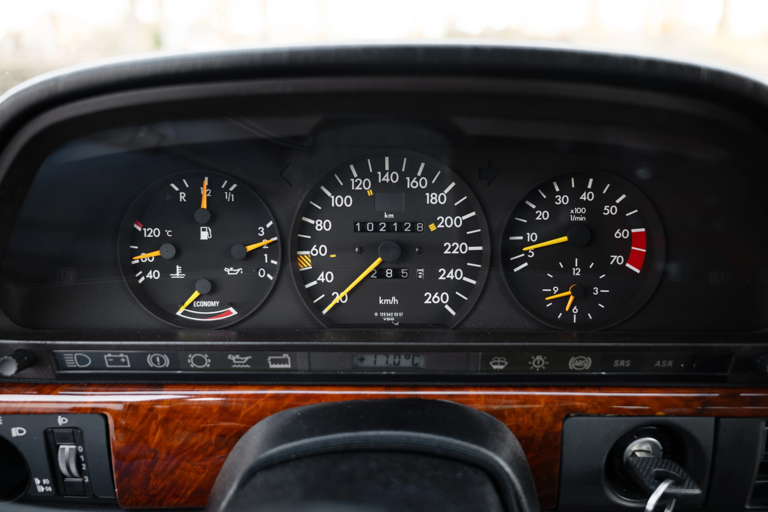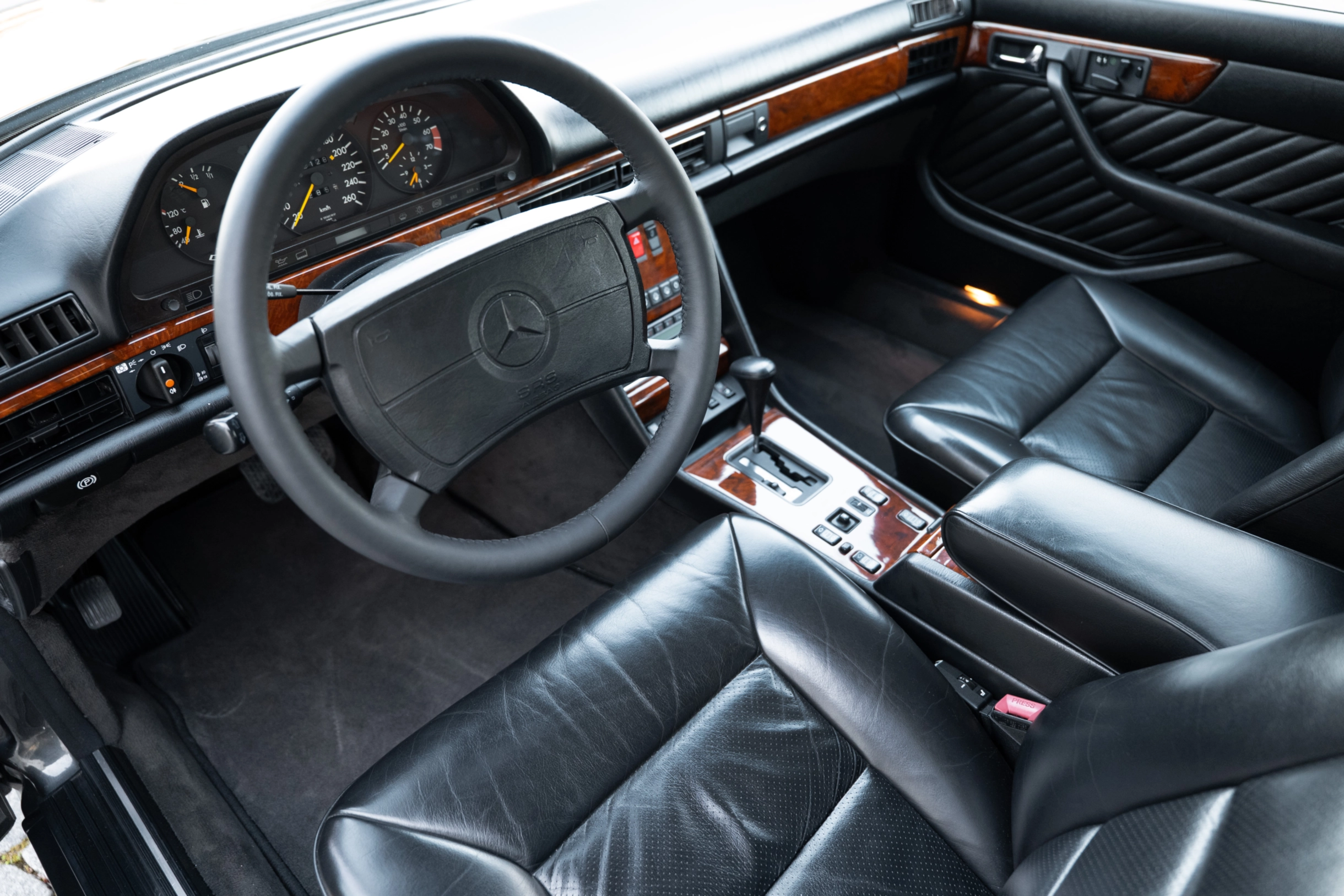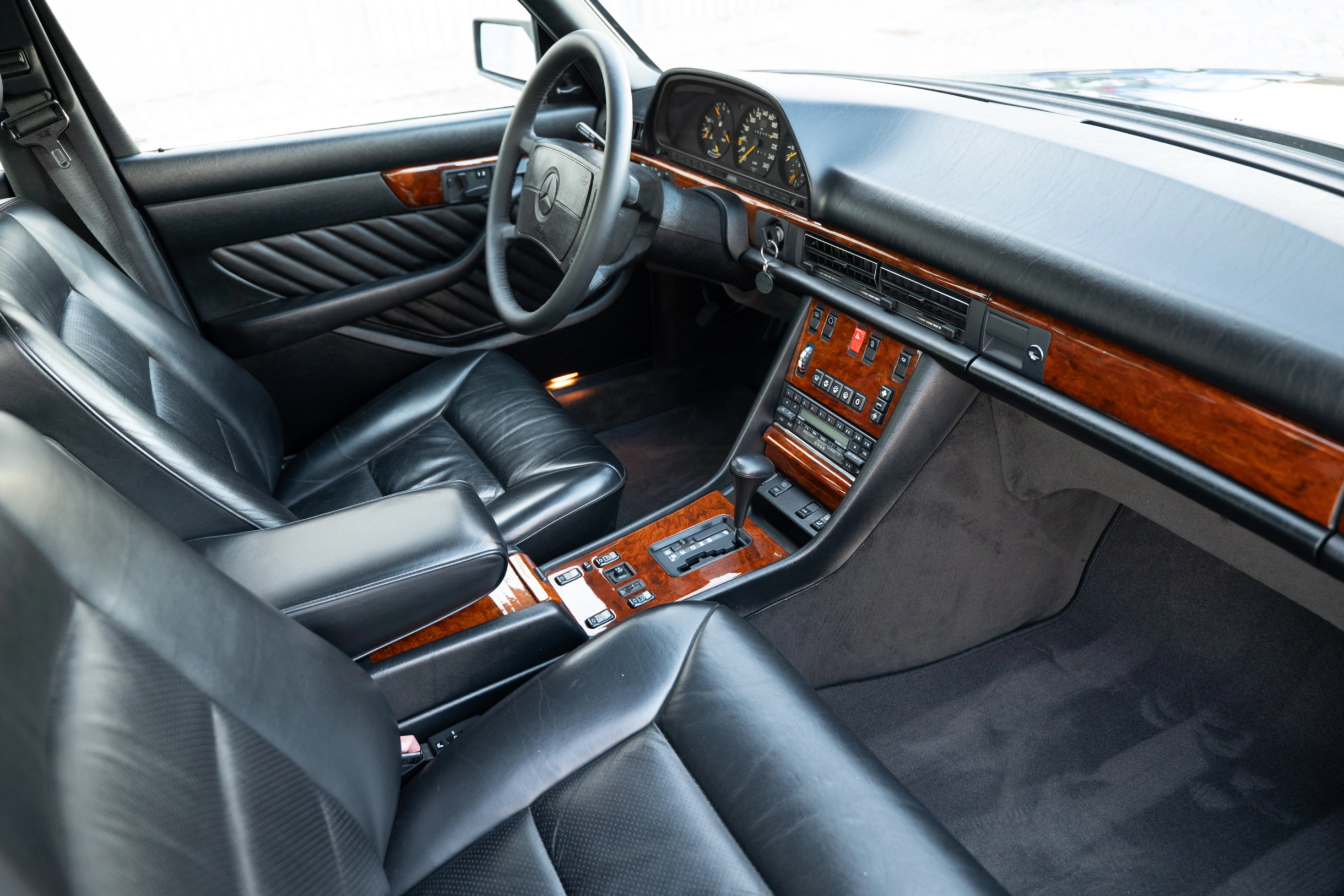 Auch das Holzdekor in edlem Wurzelnuss ist bestens erhalten. Besonders viel Freude bereitet der kraftvolle und seidenweiche M117 V8-Ottomotor mit 5547 cm³ Hubraum, 279 PS Leistung und stolzen 430 Nm Drehmoment. Noch heute steht dieser Antrieb für souveräne Fahreigenschaften und höchste Laufkultur. Rechnungen und HU-Belege seit 2010 liegen vor, wie auch das H-Gutachten, welches der Wagen im Juli 2021 ohne Probleme erhielt. Der W126 war im damaligen Oberklasse-Segment der unangefochtene Weltmarktführer und begeistert auch heute noch als gefragter und zeitloser Klassiker mit seinem unnachahmlichen Flair der 1980er Jahre. Der neue Besitzer darf sich auf eine sehr gepflegte Mercedes-Benz S-Klasse mit einem grandiosen Antrieb für kultivierten Fahrspaß freuen.
