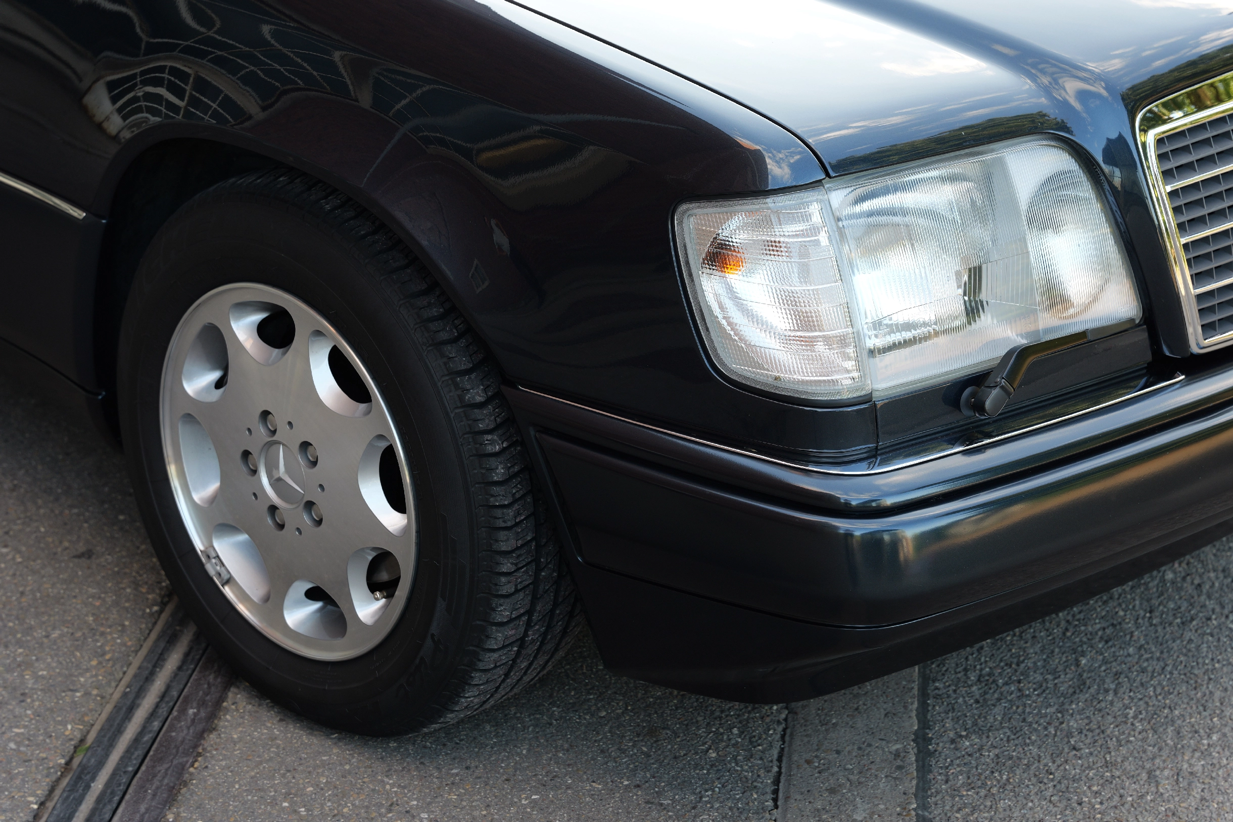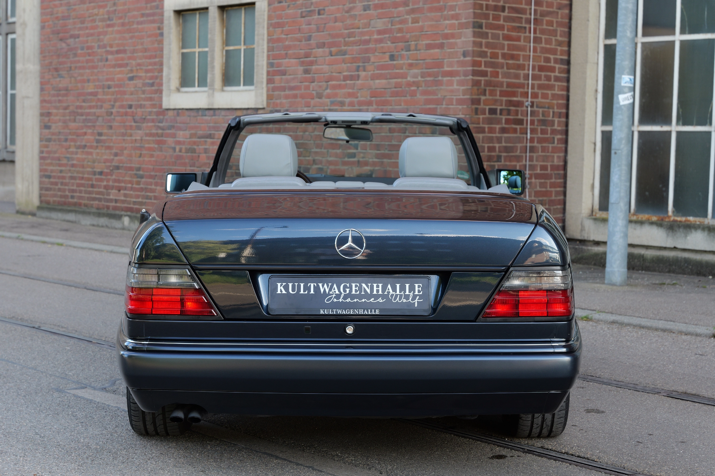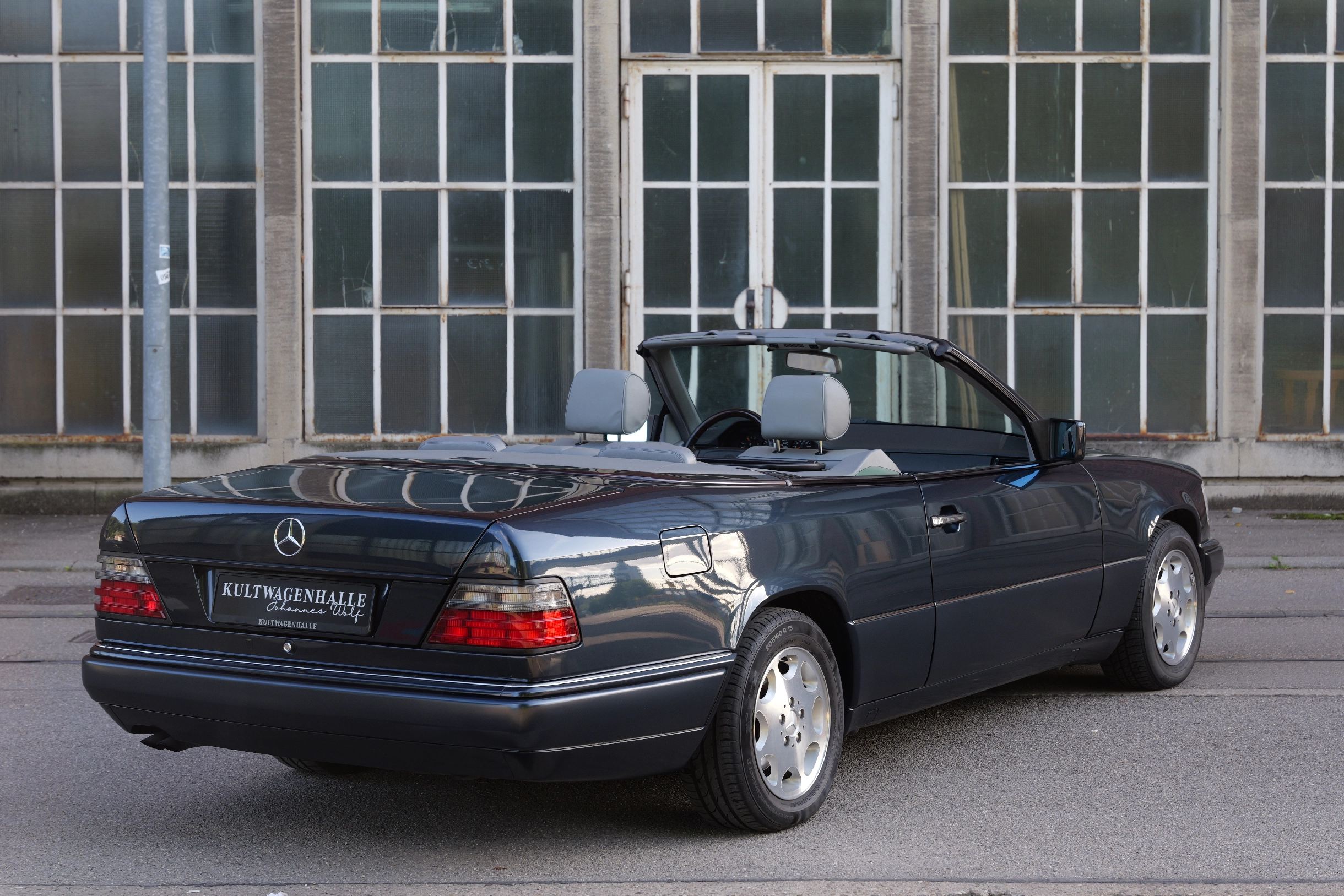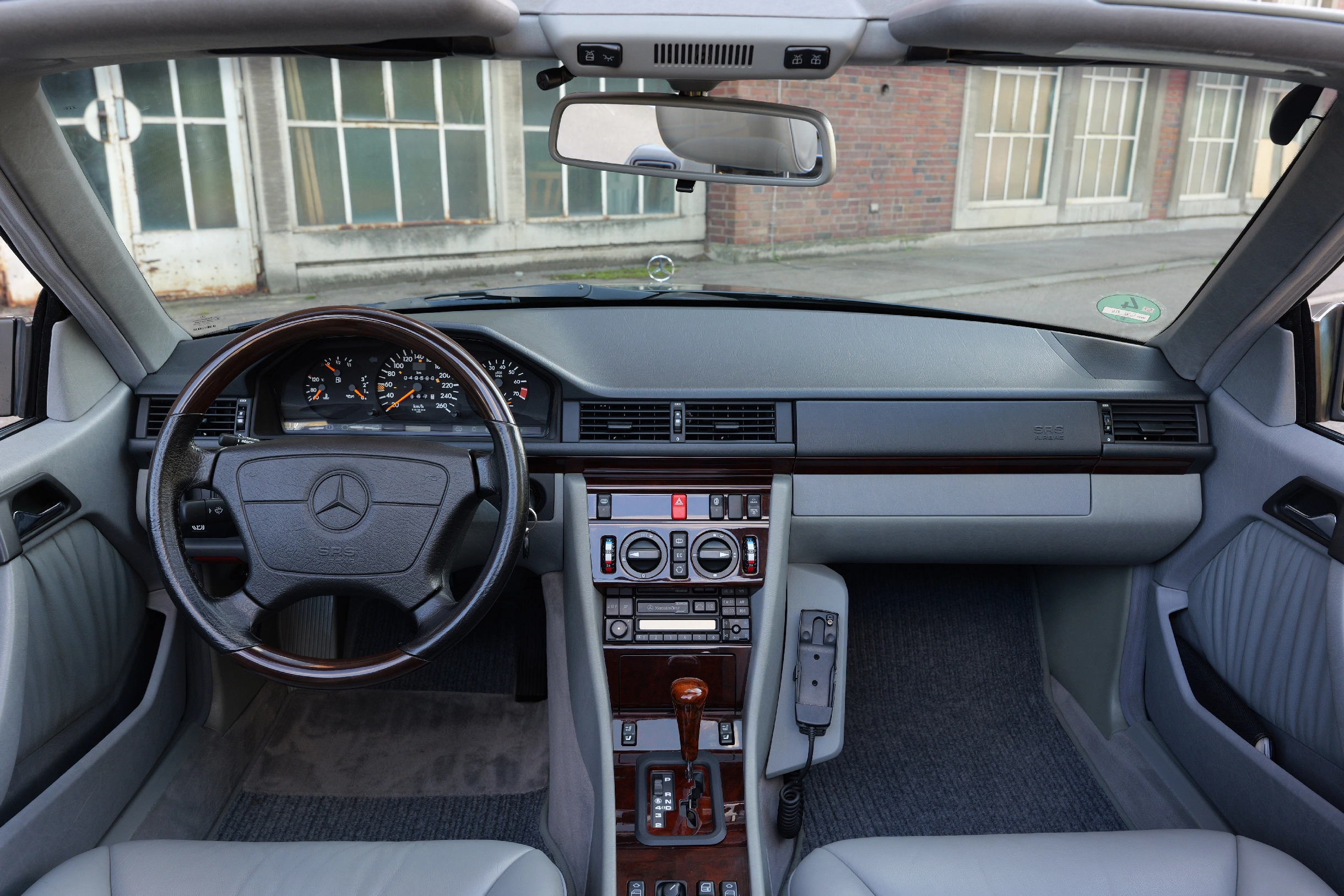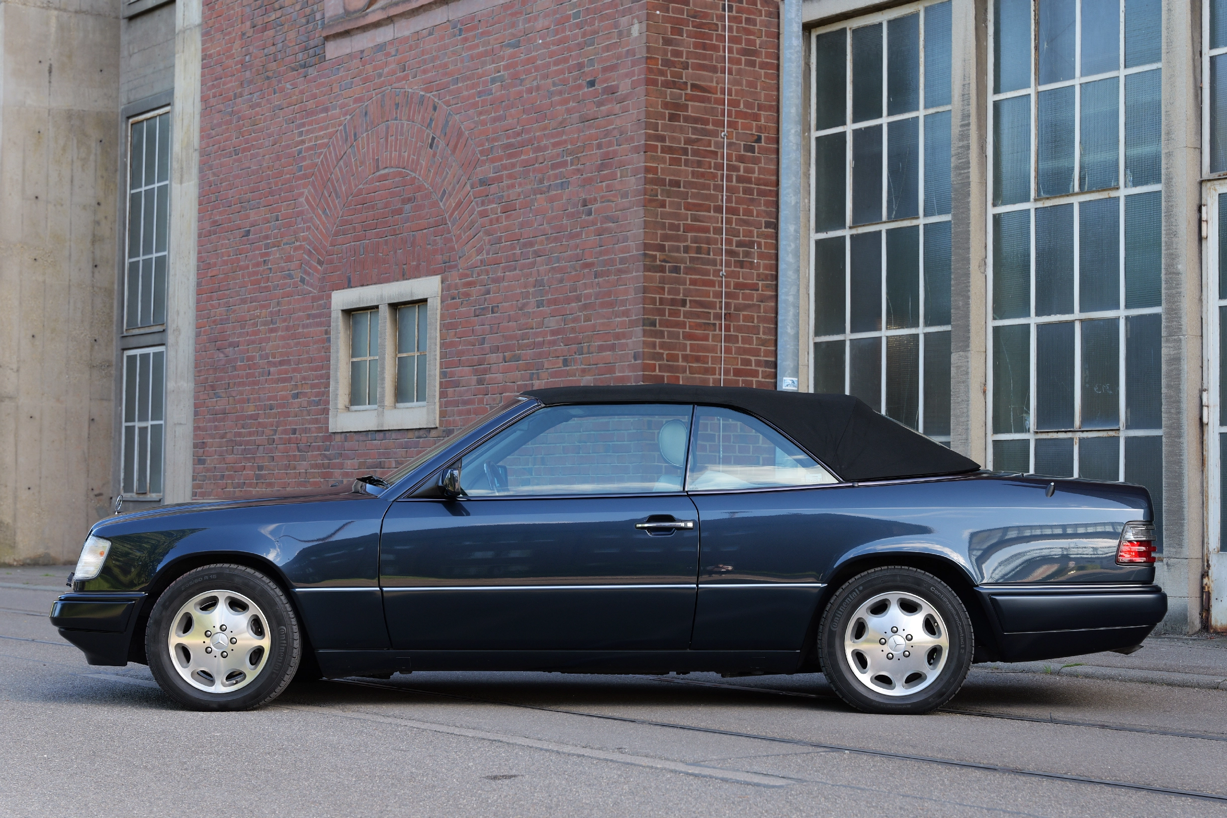 Im November 1984 wurden die mit viel Spannung erwarteten Limousinen der neuen Baureihe 124 als „Mittlere Mercedes-Klasse“ vorgestellt. Ganz unter dem Motto „form follows function“, wurden die Fahrzeuge unter sachlich-funktionalen Gesichtspunkten konstruiert. Nach Limousine, T-Modell und Coupé wurde im September 1991 auf der IAA mit dem Cabriolet eine weitere Karosserie-Variante vorgestellt. Die Entwicklung der offenen Variante, bei der das Coupé als Grundlage gedient hatte, war mit hohem konstruktiven Aufwand erfolgt. Trotz der guten Ausgangsbasis mußten zur Versteifung der Karosserie rund 1.000 Teile neu konstruiert werden. Für nahezu alle tragenden Teile wurde dickeres, hochfestes Stahlblech verwendet. Das voll versenkbare Verdeck überzeugte durch eine Fülle durchdachter technischer Details. Im Juni 1993 wurde die Baureihe 124 stilistisch überarbeitet und wurde zudem mit neuen Motoren ausgestattet. Die Cabriolets wurde noch bis Juni 1997 produziert und begeistern bis heute mit funktionalen Details und durchdachter Technik.