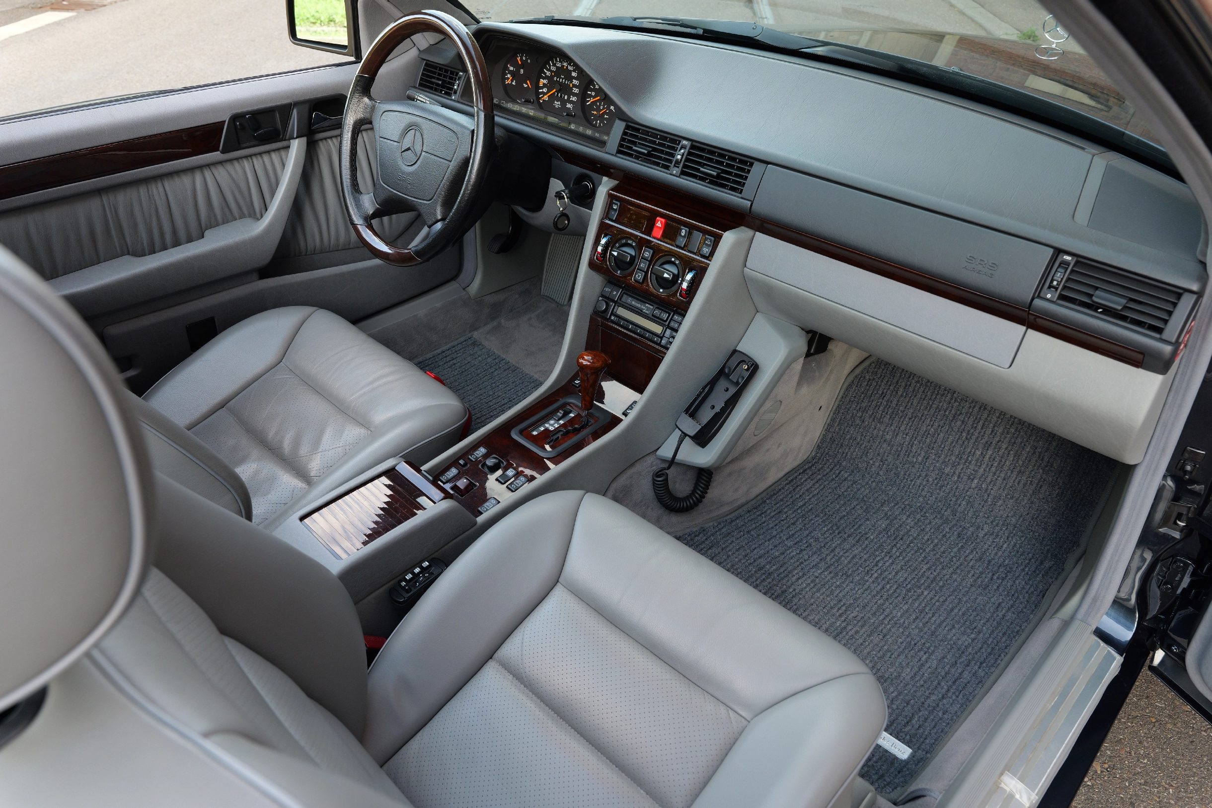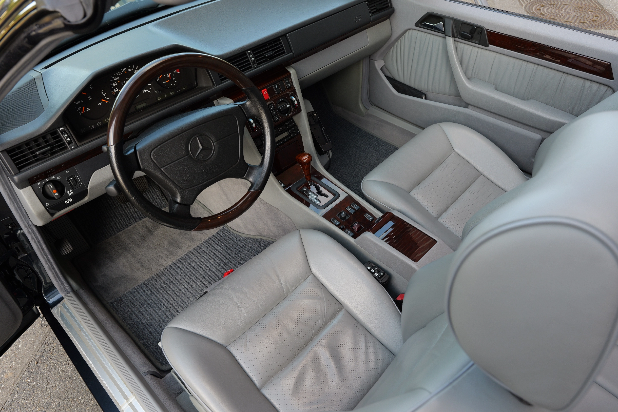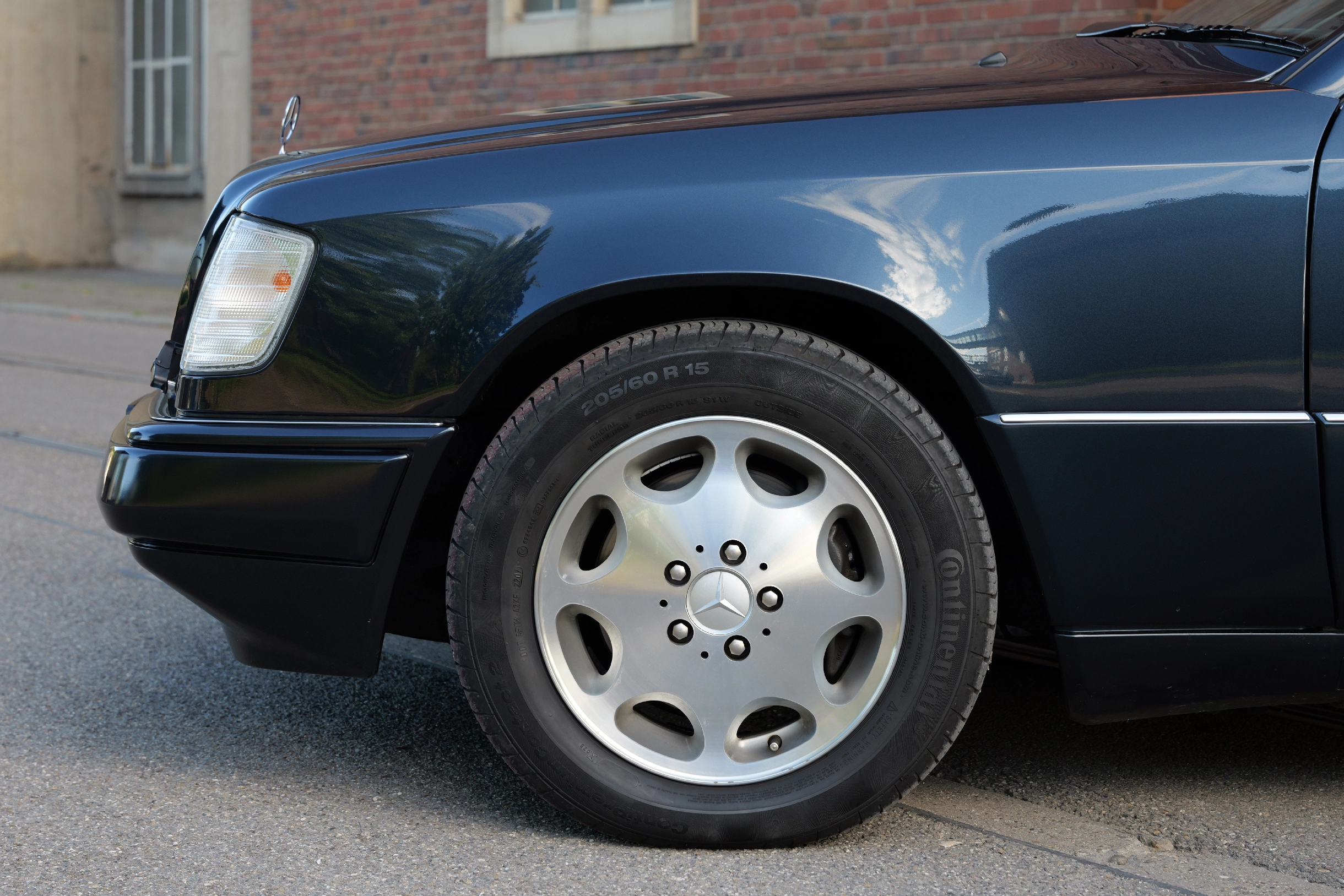Die Lackierung in der seltenen Farbe Smaragdschwarz-Metallic befindet sich im Erstlack. Der Innenraum in Leder Grau mit Zierelementen und Lenkrad in der Holzvariante Wurzelnuss zeigt kaum Gebrauchspuren. Der Blick in den nahezu neuwertigen Motorraum ist beeindruckend. Zudem hat das elegante Cabriolet eine sehr umfangreiche Ausstattungsliste inklusive der serienmäßig glanzgedrehte 8-Loch Alufelgen. Ein ganz besonderes und sehr seltenes Highlight ist das mitgelieferte Wiesmann Hardtop mit Innenbeleuchtung und Heckscheibenheizung, welches das Cabriolet in ein vollwertiges Coupé mit all seinen Vorzügen verwandelt. Neben der originalen Bordmappe mit Betriebsanleitung, Wartungsheft, Datenkarte, Produktionskarte und Bedienungsanleitung sind zudem diverse Rechnungen, der alte Fahrzeugbrief und eine Classic Data Fahrzeugbewertung aus dem Jahr 2016 vorliegend. Mit gültigem TÜV darf sich der neue Besitzer auf ein aussergewöhnlich schönes 124er Cabriolet im Bestzustand freuen, das in den kommenden Jahren sicher noch weiter im Wert steigen wird.