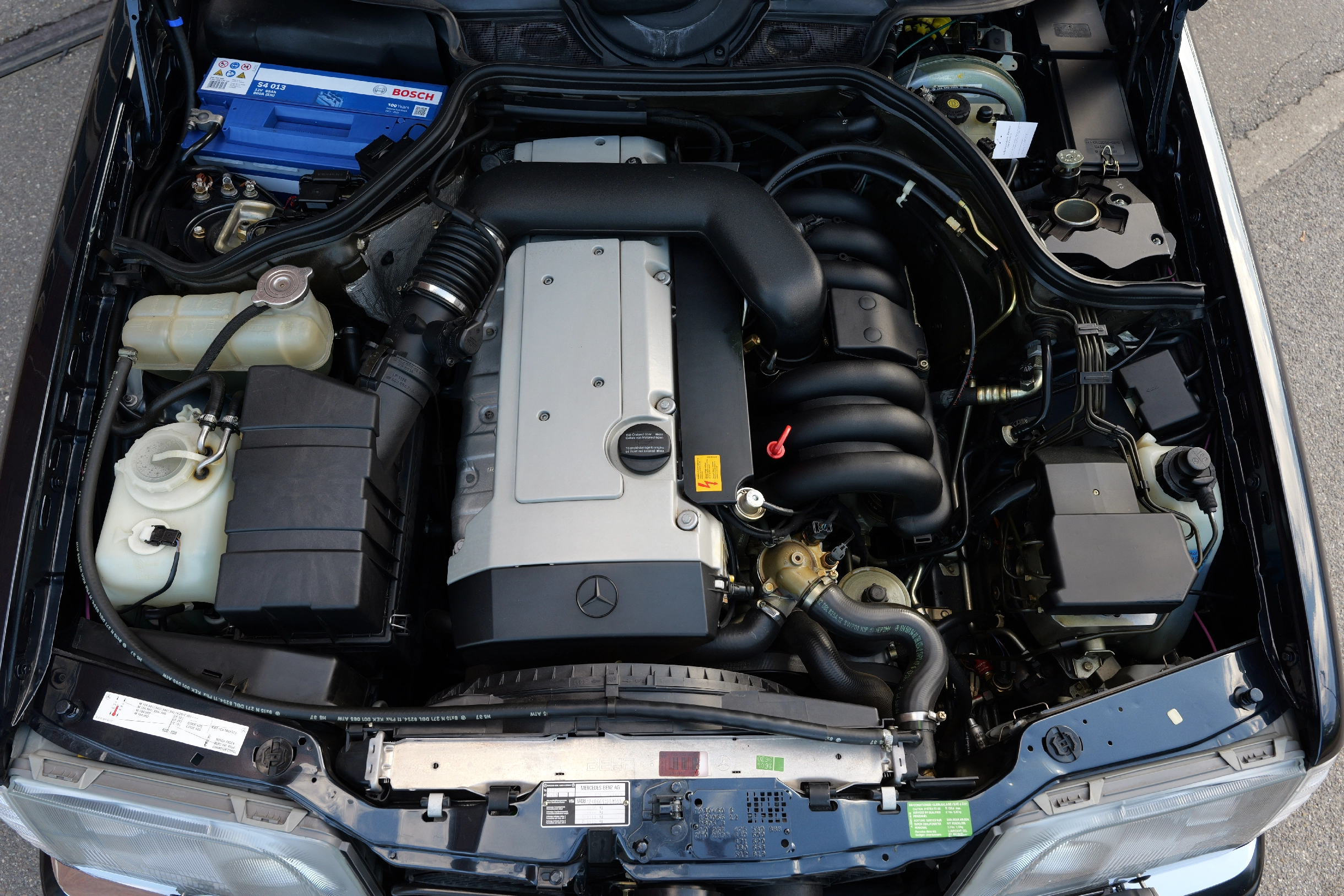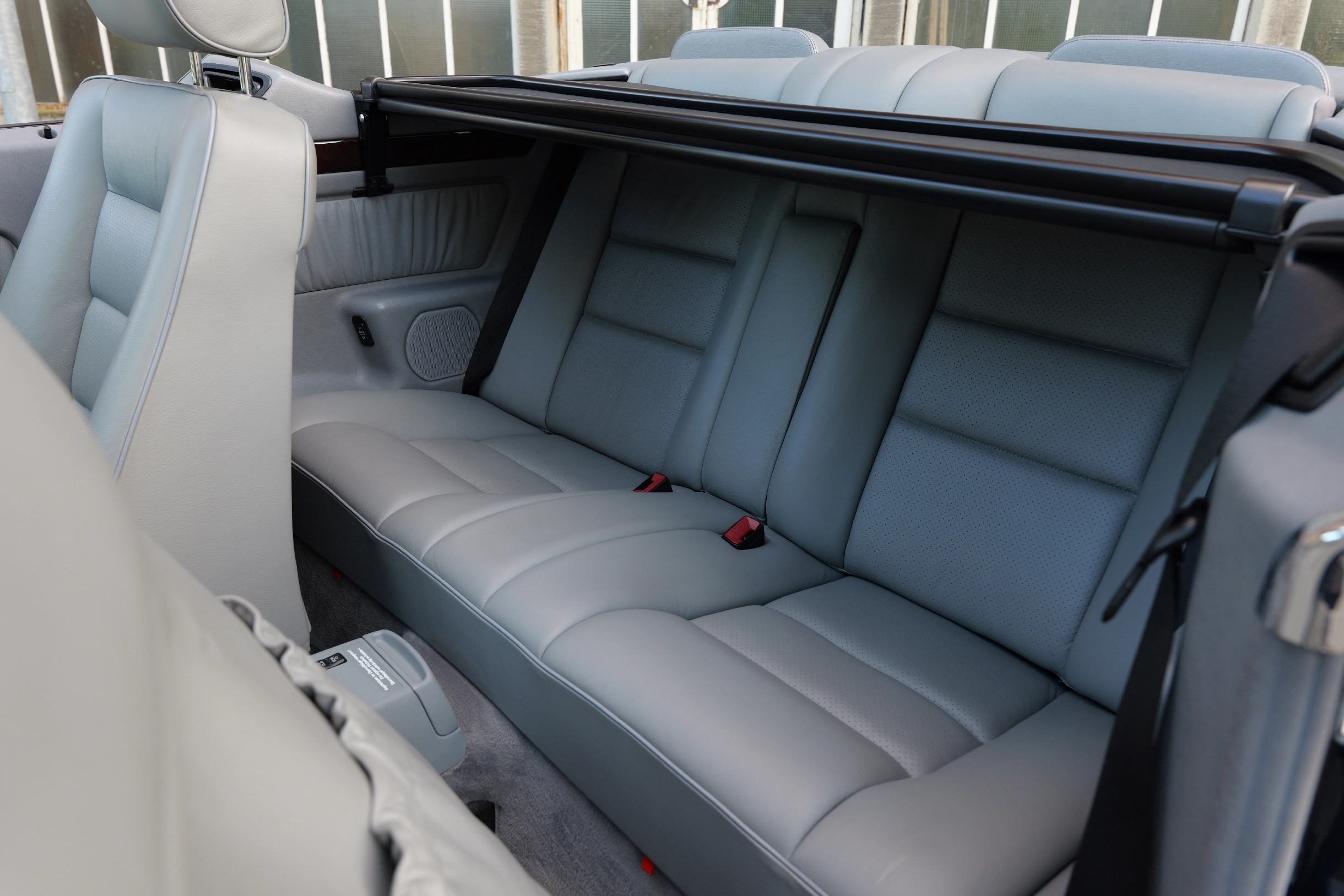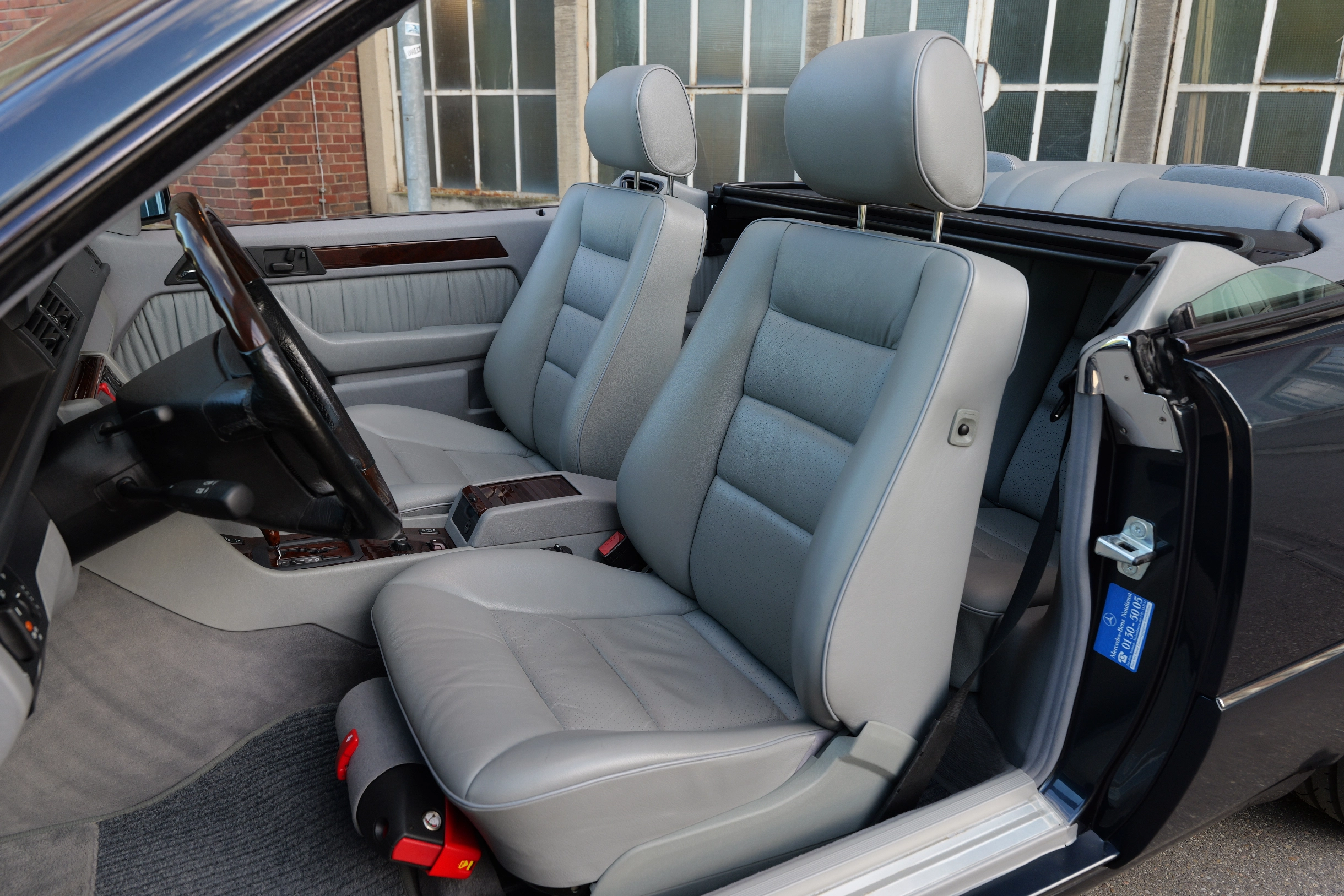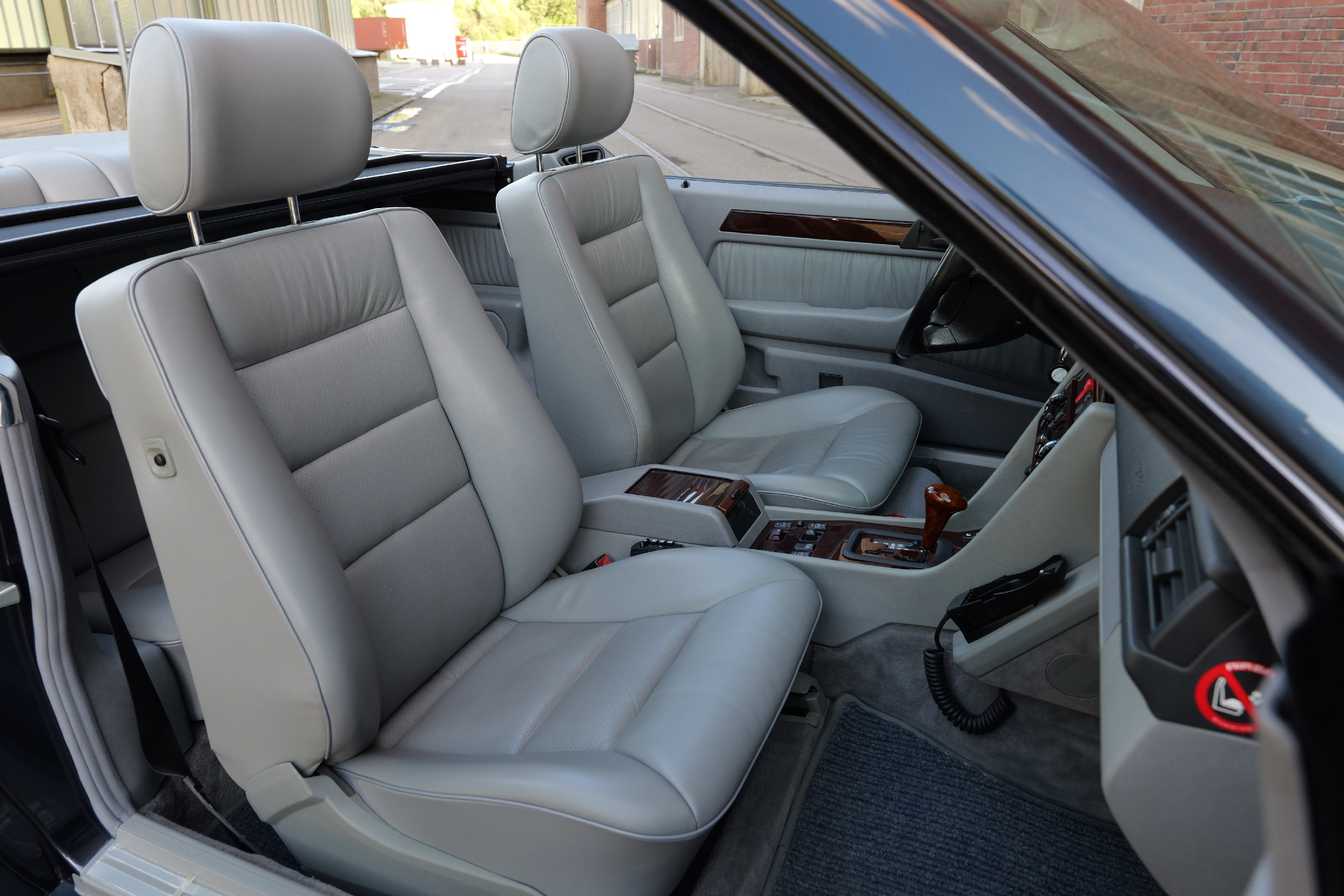 Die Lackierung in der seltenen Farbe Smaragdschwarz-Metallic befindet sich im Erstlack. Der Innenraum in Leder Grau mit Zierelementen und Lenkrad in der Holzvariante Wurzelnuss zeigt kaum Gebrauchspuren. Der Blick in den nahezu neuwertigen Motorraum ist beeindruckend. Zudem hat das elegante Cabriolet eine sehr umfangreiche Ausstattungsliste inklusive der serienmäßig glanzgedrehte 8-Loch Alufelgen. Ein ganz besonderes und sehr seltenes Highlight ist das mitgelieferte Wiesmann Hardtop mit Innenbeleuchtung und Heckscheibenheizung, welches das Cabriolet in ein vollwertiges Coupé mit all seinen Vorzügen verwandelt. Neben der originalen Bordmappe mit Betriebsanleitung, Wartungsheft, Datenkarte, Produktionskarte und Bedienungsanleitung sind zudem diverse Rechnungen, der alte Fahrzeugbrief und eine Classic Data Fahrzeugbewertung aus dem Jahr 2016 vorliegend. Mit gültigem TÜV darf sich der neue Besitzer auf ein aussergewöhnlich schönes 124er Cabriolet im Bestzustand freuen, das in den kommenden Jahren sicher noch weiter im Wert steigen wird.