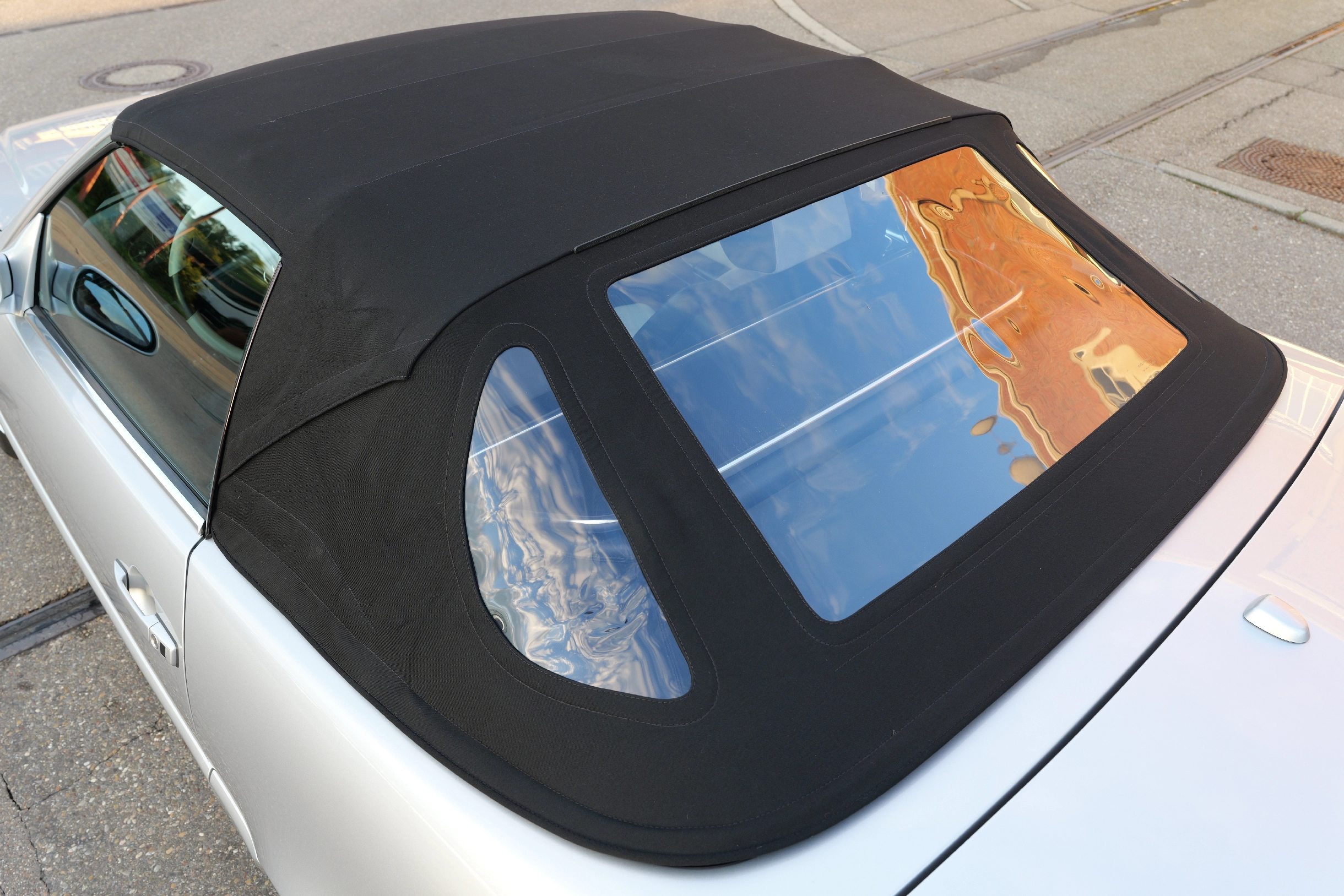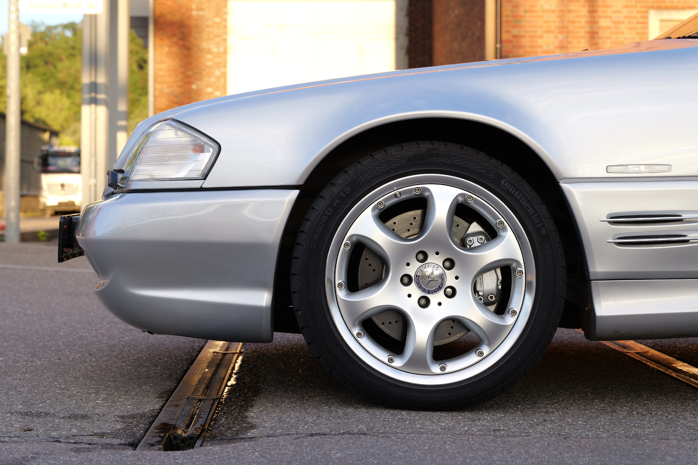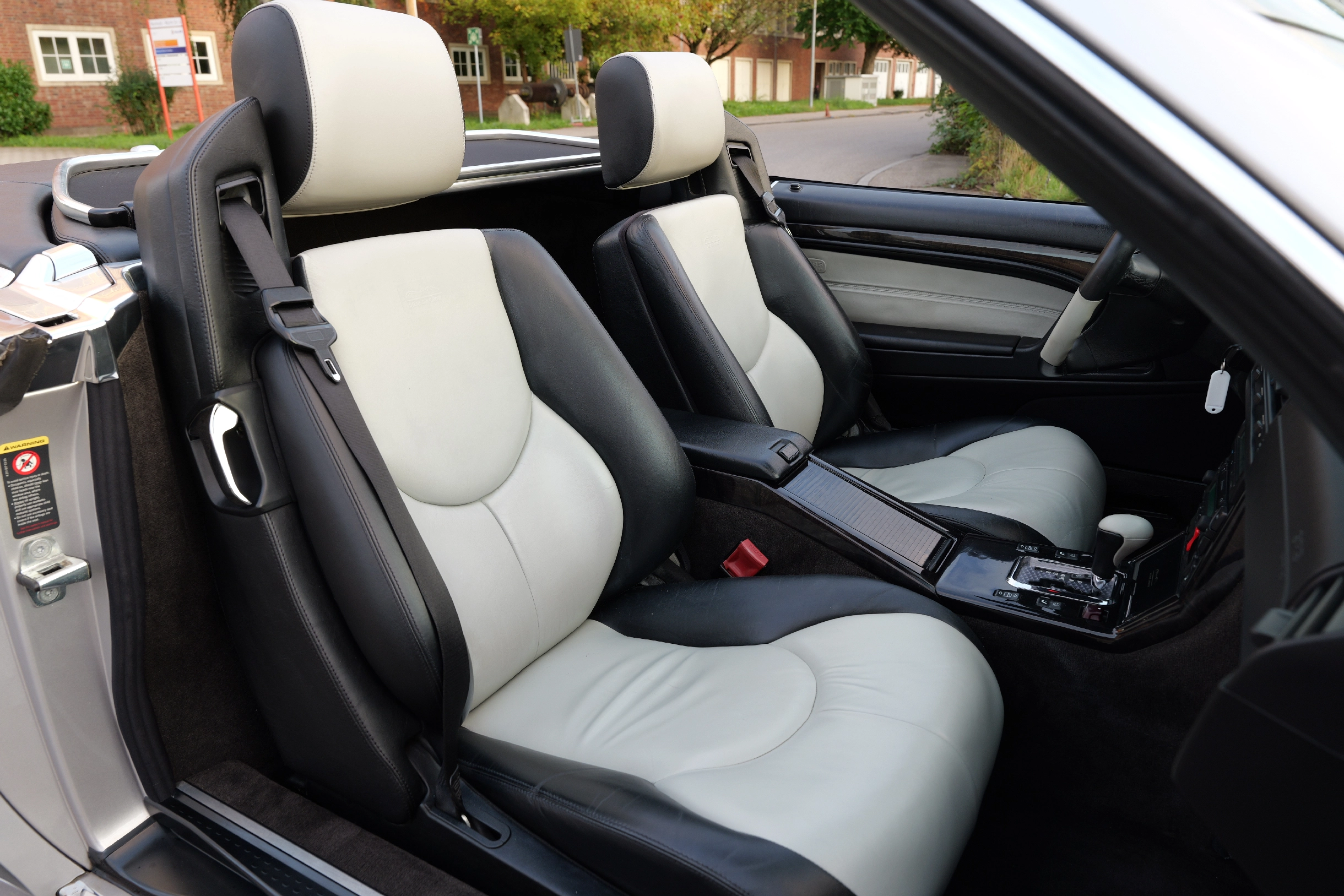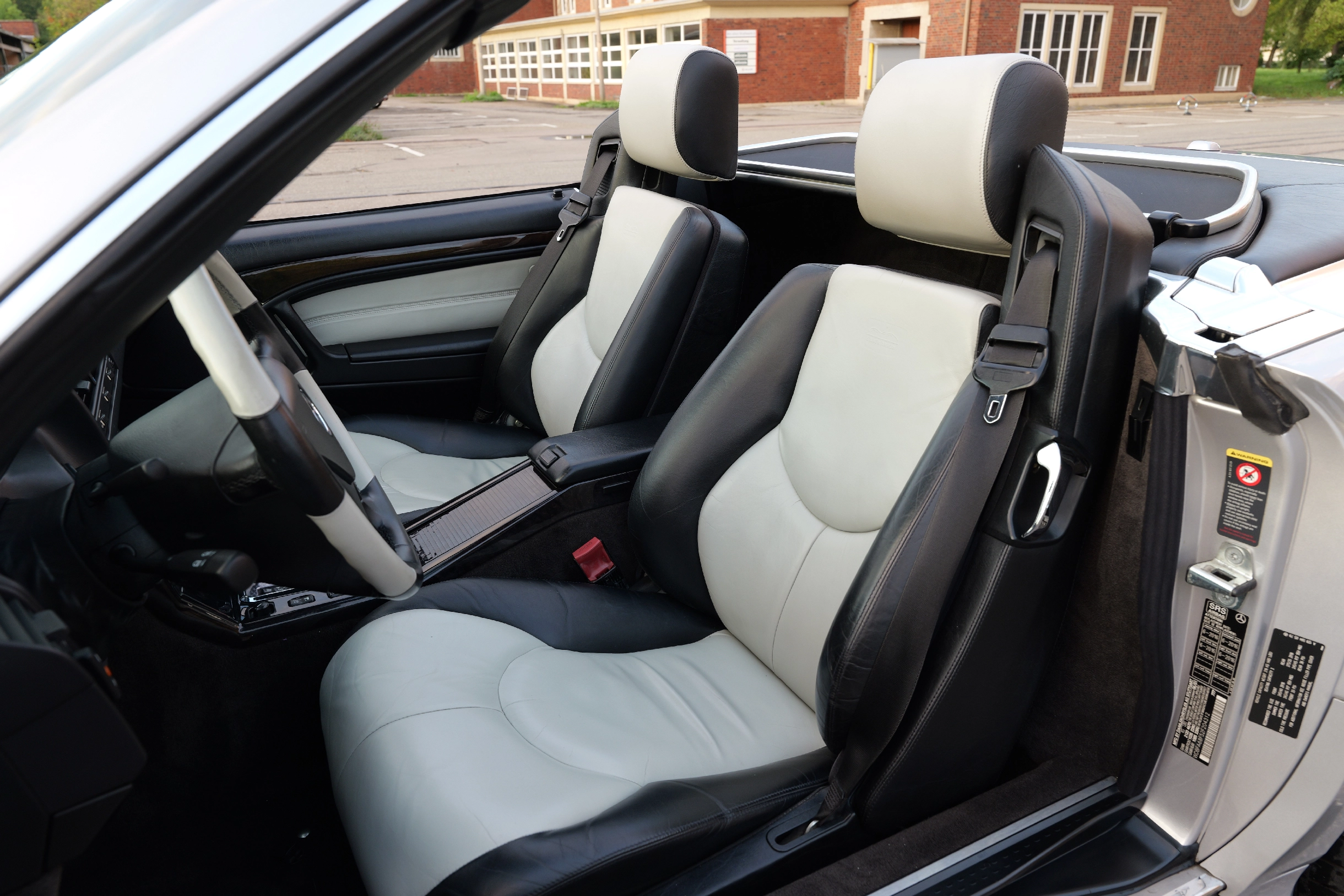 Der Mercedes-Benz SL500 Silver Arrow Limited Edition in diesem Angebot wurde im Jahr 2001 in einer limitierten Stückzahl von 1450 Fahrzeugen ausschließlich für die USA produziert und im Jahr 2002 zum Ende der Baureihe auf den Markt gebracht. Die begehrte Sammler-Edition ist eine Hommage an die erfolgreichen Silberpfeil-Rennwagen der 1930er Jahre und gilt als einer der Höhepunkte der R129-Baureihe. Die Highlights dieses Modells umfassen eine spezielle Lackierung in Silver Arrow Metallic (777), 18 Zoll Albireo Hochglanz-Leichtmetallräder von BBS, gelochte Bremsscheiben mit silbern lackierten Bremssätteln sowie Lufteinlässe mit Alu-Chromglanz-Finnen und speziellem Silver-Arrow-Schriftzug an den Kotflügeln. Ein AMG-Optik-Paket mit Frontspoiler, Seitenschwellern und Heckschürze runden das herausragende Erscheinungsbild ab. Im Innenraum hat das Sondermodell eine Volllederausstattung in Schwarz mit Sitzmittelbahn und Kopfstützen in Oriongrau, Holzeinlagen in Vogelaugenahorn Schwarz, Kombiinstrument und Schaltkulisse in Aluminiumstruktur Perlschliff mit Chromrahmen sowie spezielle Silver-Arrow-Logos auf den beleuchteten Einstiegsleisten und dem Aschenbecherdeckel. Der kraftvolle M113 5-Liter-V8-Motor mit einer Leistung von 306 PS und 460 Nm Drehmoment sorgt in Verbindung mit dem 5-Gang-Automatikgetriebe stets für souveränen Vortrieb.