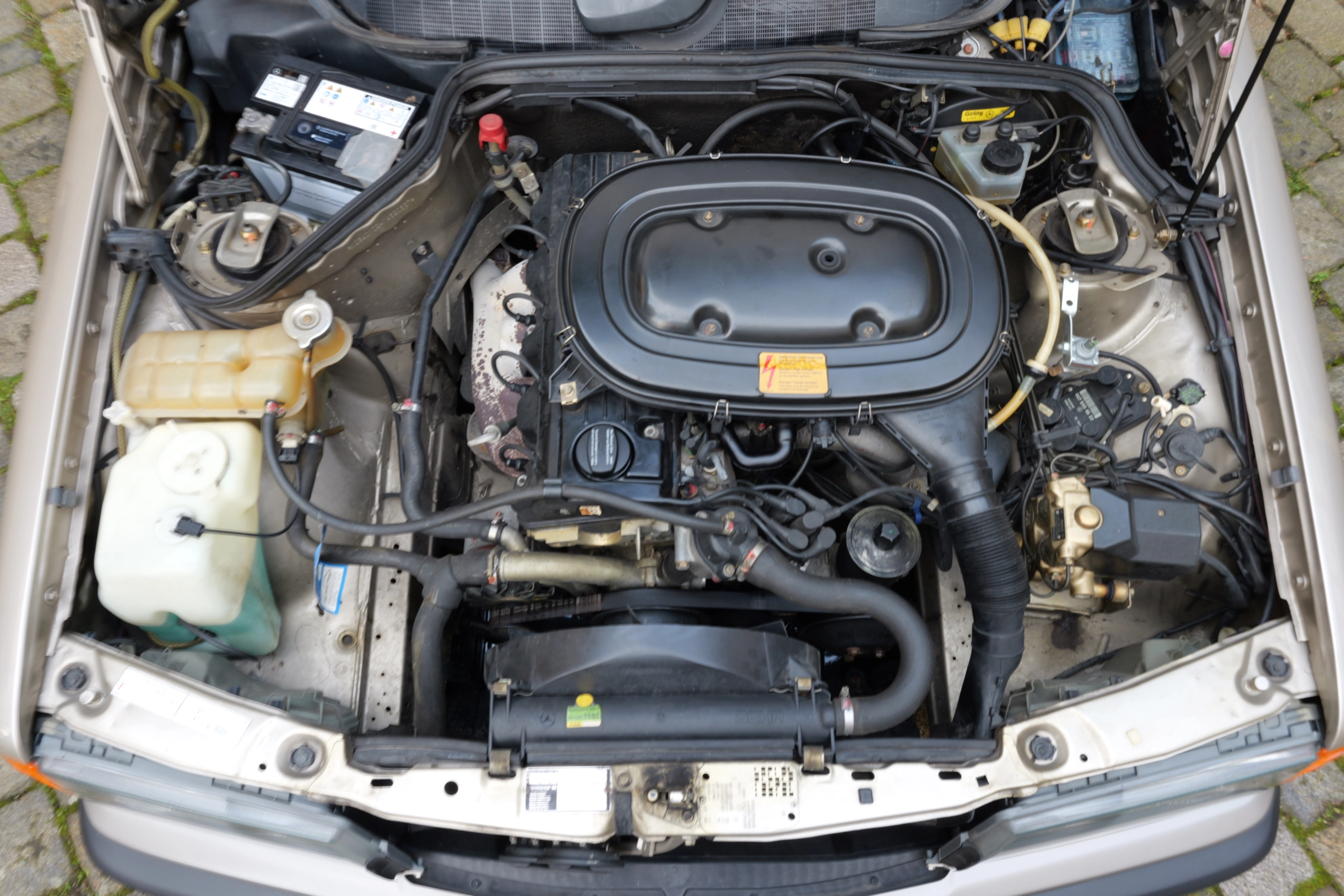 Im Juni 2015 erfolgt die Außerbetriebsetzung des gepflegten Mercedes, der daraufhin verkauft, aber nicht mehr zugelassen wird. Fachmännisch eingelagert bleibt der Wagen rund 10 Jahre stillgelegt und wird bei der Kultwagenhalle wieder behutsam in Betrieb genommen. Mit neuem Service läuft der M102 Reihen-Vierzylinder mit 1996 cm³ Hubraum, 118 PS Leistung und 172 Nm Drehmoment wieder rund und geschmeidig. Zusammen mit der robusten 4-Gang Automatik ist für ausreichend Vortrieb und angenehmes Fahren gesorgt. Sinnvolle Ausstattungsdetails und der absolut originale Zustand runden das Angebot ab. Mit neuer HU/AU, einer H-Zulassung, neuer Mercedes Batterie und frischem Service darf sich der neue Besitzer auf einen zeitlosen Klassiker freuen, der mit seiner Zuverlässigkeit und Wirtschaftlichkeit auch im Alltag stets eine gute Figur abgibt.